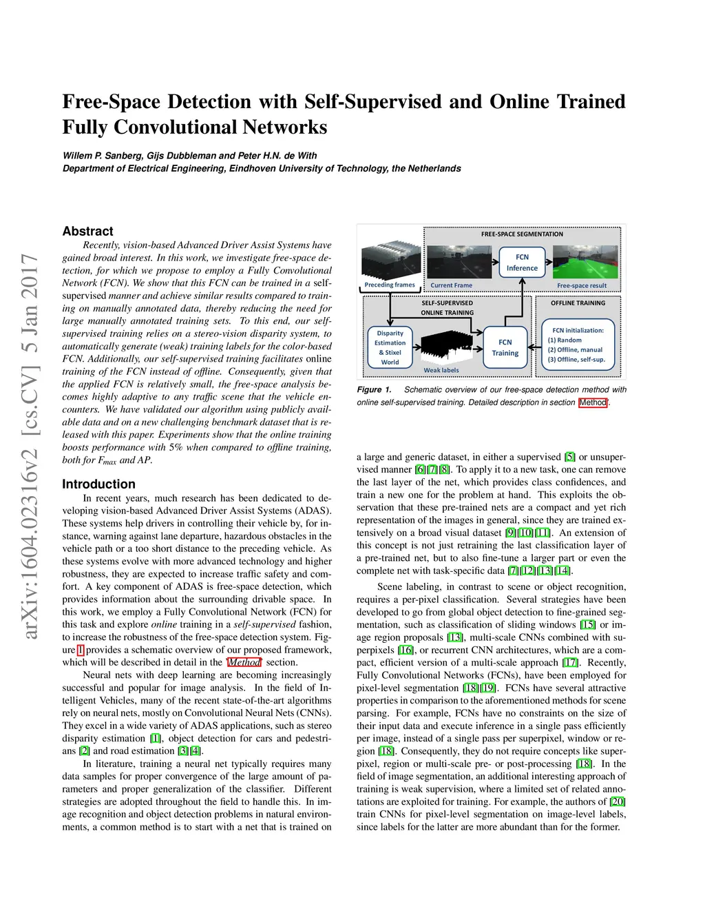 Free-Space Detection with Self-Supervised and Online Trained Fully