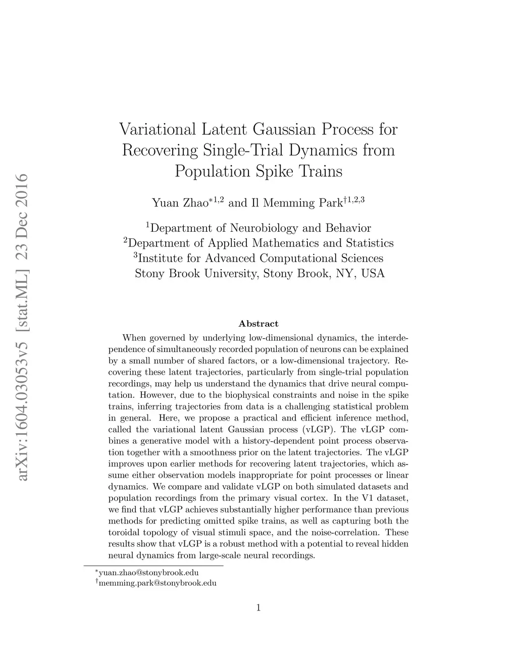 Variational Latent Gaussian Process for Recovering Single-Trial Dynamics