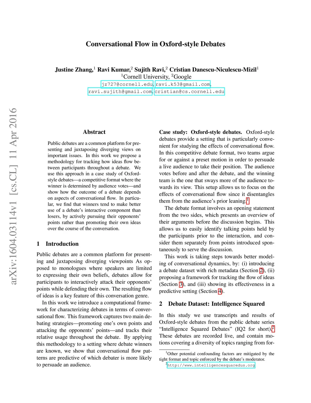 Conversational flow in Oxford-style debates