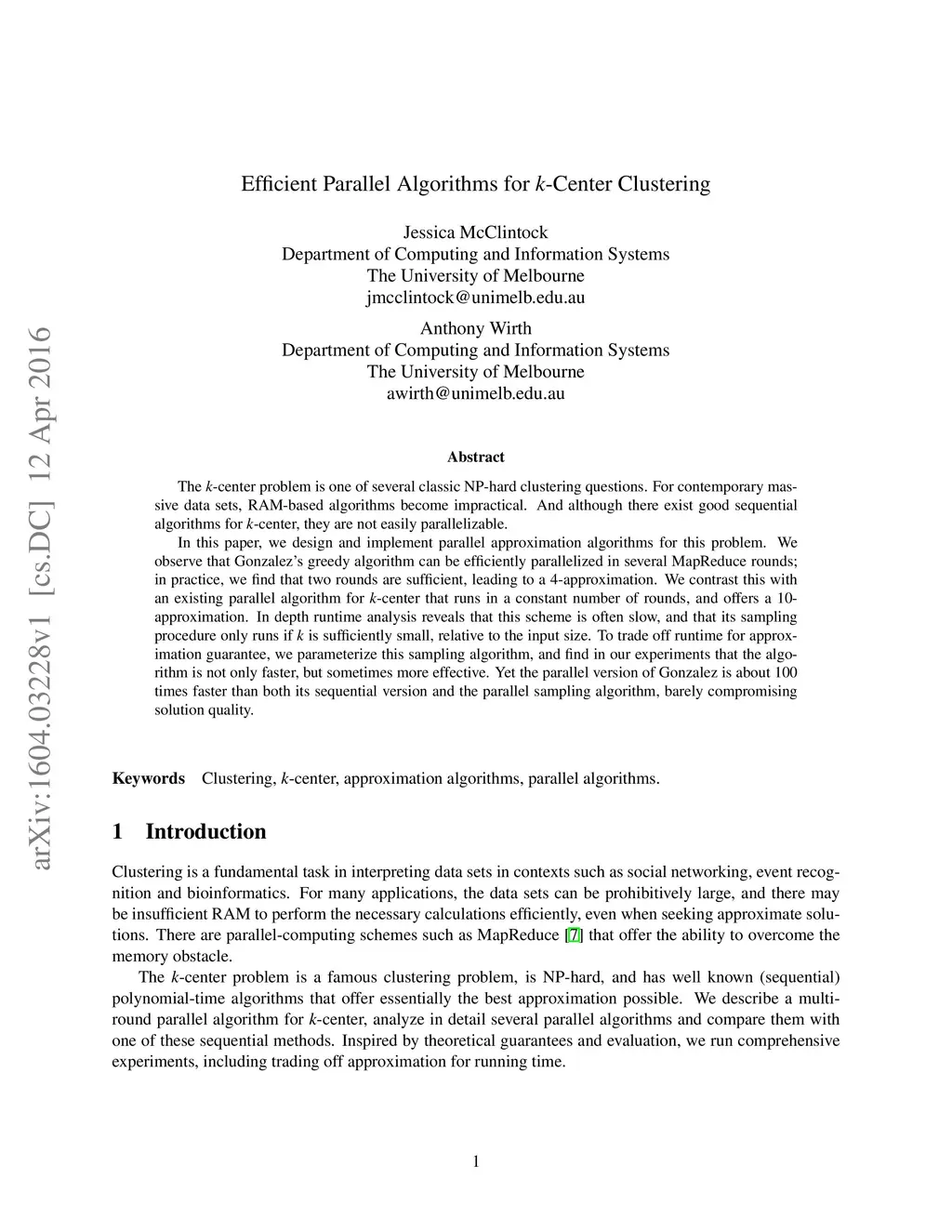 Efficient Parallel Algorithms for k-Center Clustering