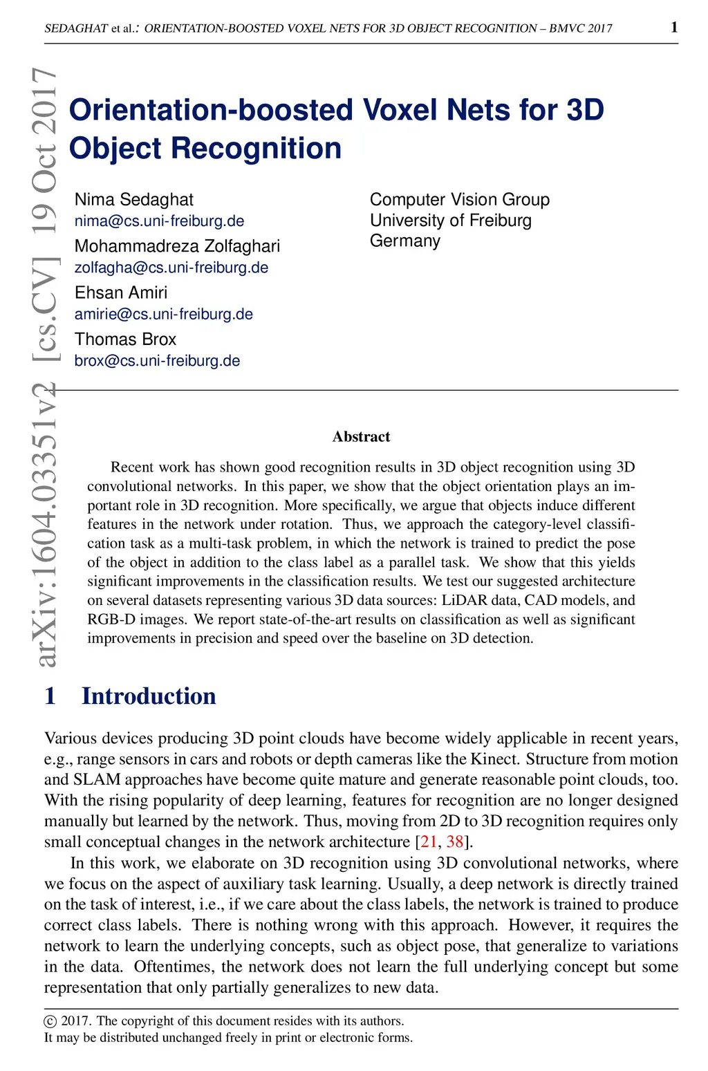 Orientation-boosted Voxel Nets for 3D Object Recognition