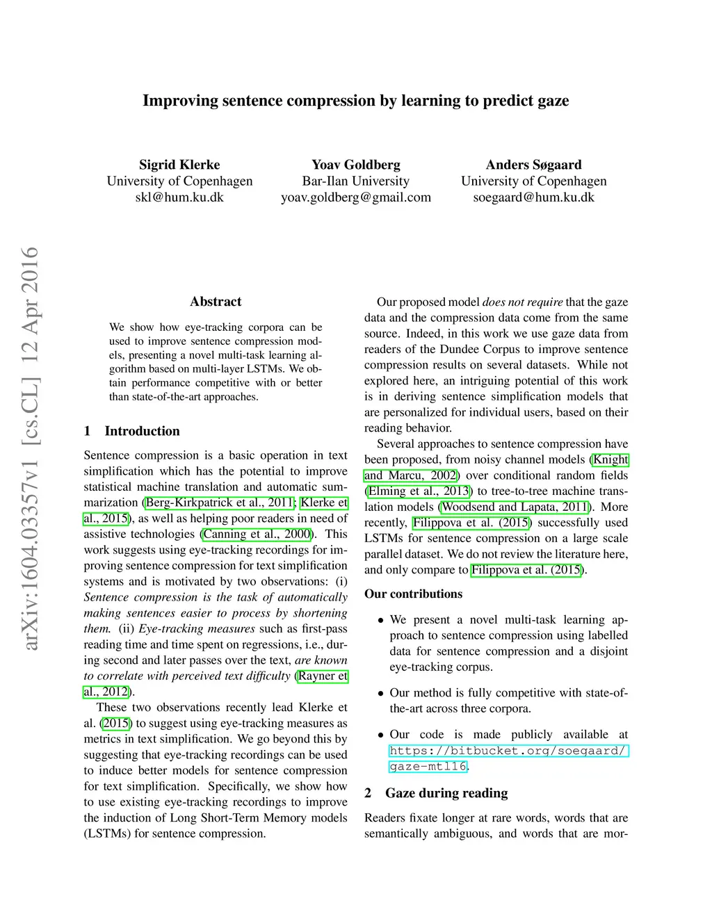 Improving sentence compression by learning to predict gaze