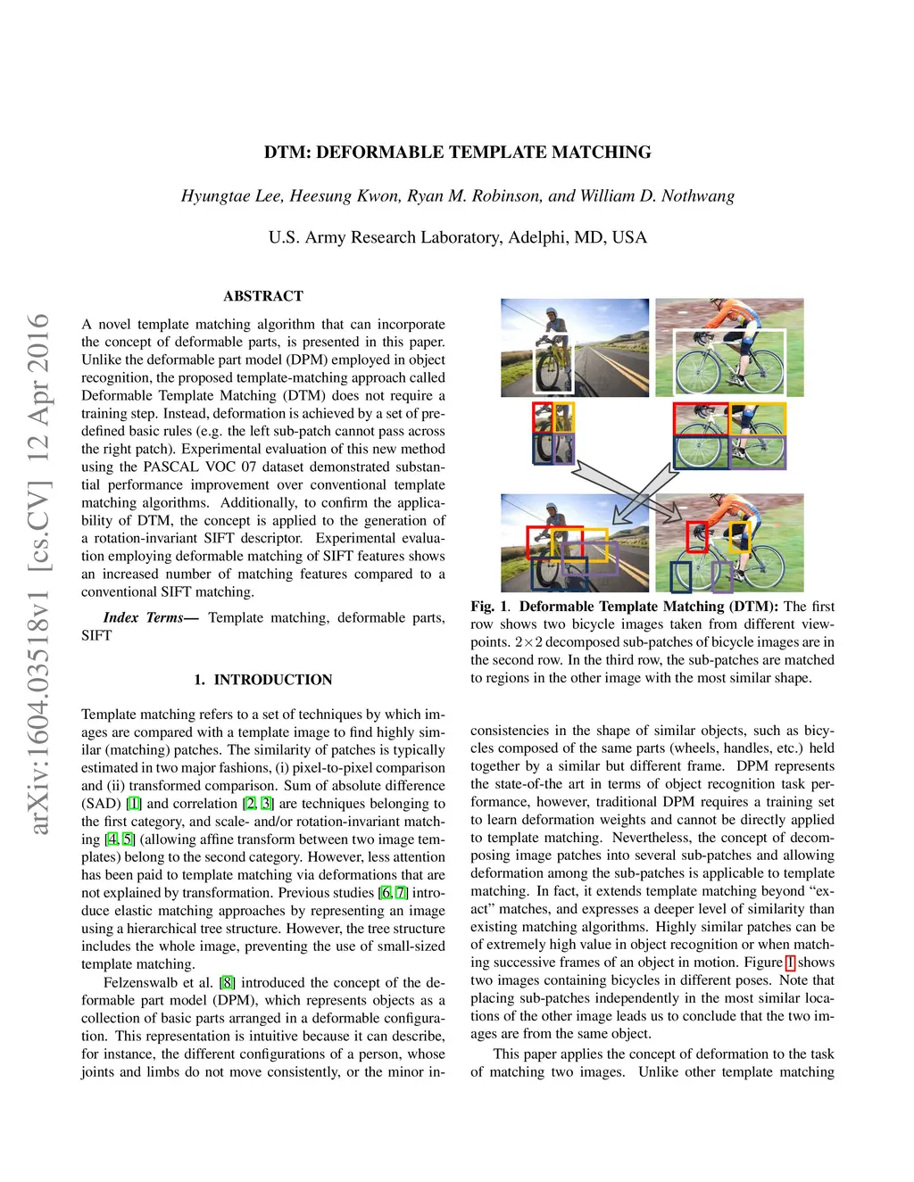 A novel template matching algorithm that can incorporate the concept of deformable parts, is presented in this paper. Unlike the deformable part model (DPM) employed in object recognition, the proposed template-matching approach called Deformable Template Matching (DTM) does not require a training step. Instead, deformation is achieved by a set of predefined basic rules (e.g. the left sub-patch cannot pass across the right patch). Experimental evaluation of this new method using the PASCAL VOC 07 dataset demonstrated substantial performance improvement over conventional template matching algorithms. Additionally, to confirm the applicability of DTM, the concept is applied to the generation of a rotation-invariant SIFT descriptor. Experimental evaluation employing deformable matching of SIFT features shows an increased number of matching features compared to a conventional SIFT matching.