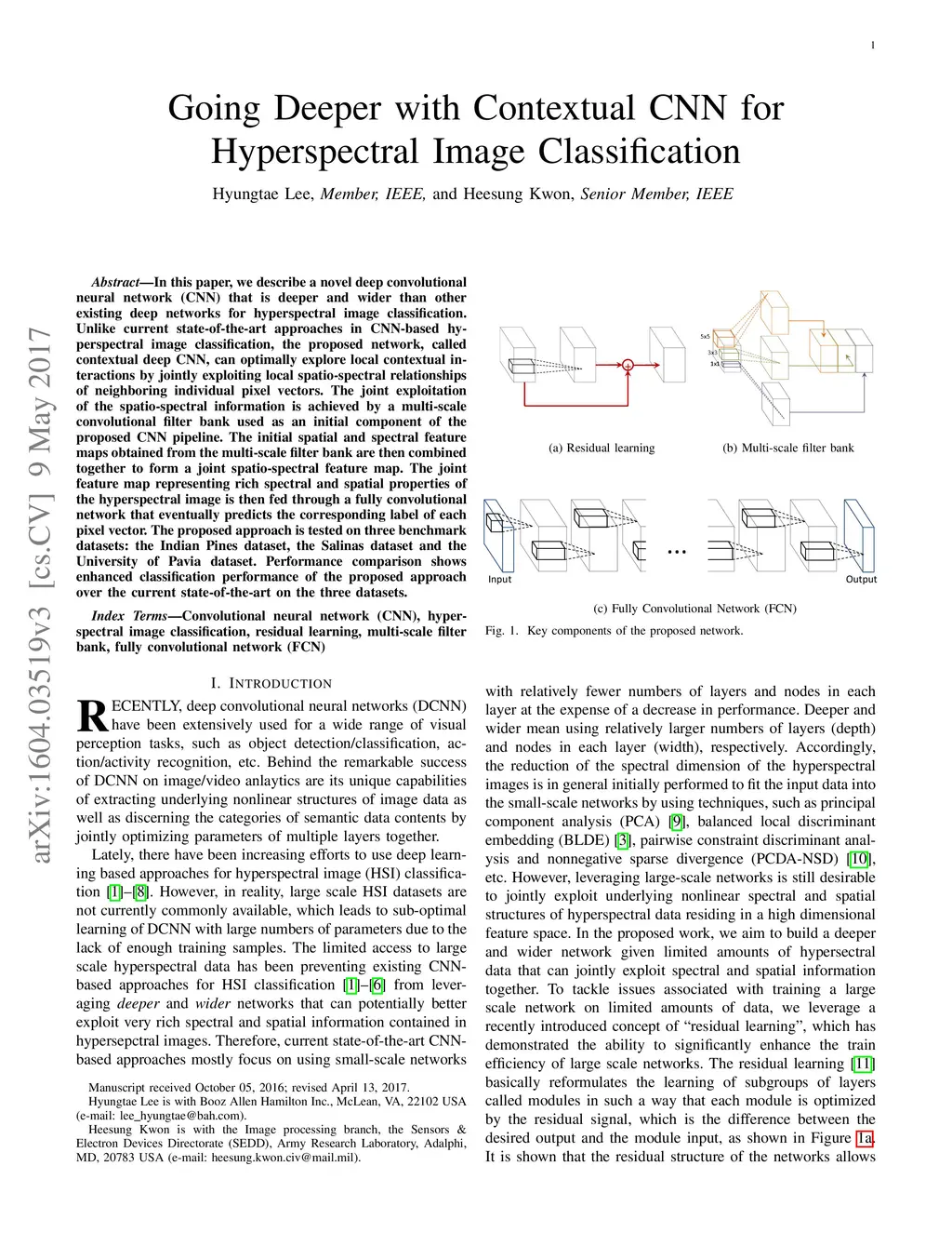 Going Deeper with Contextual CNN for Hyperspectral Image Classification