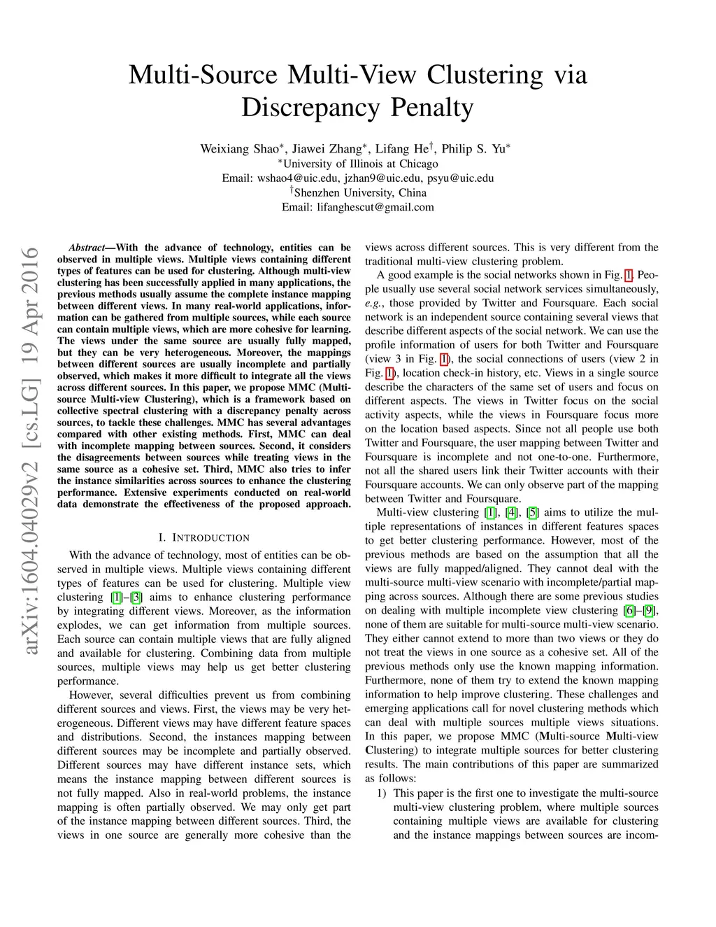 Multi-Source Multi-View Clustering via Discrepancy Penalty