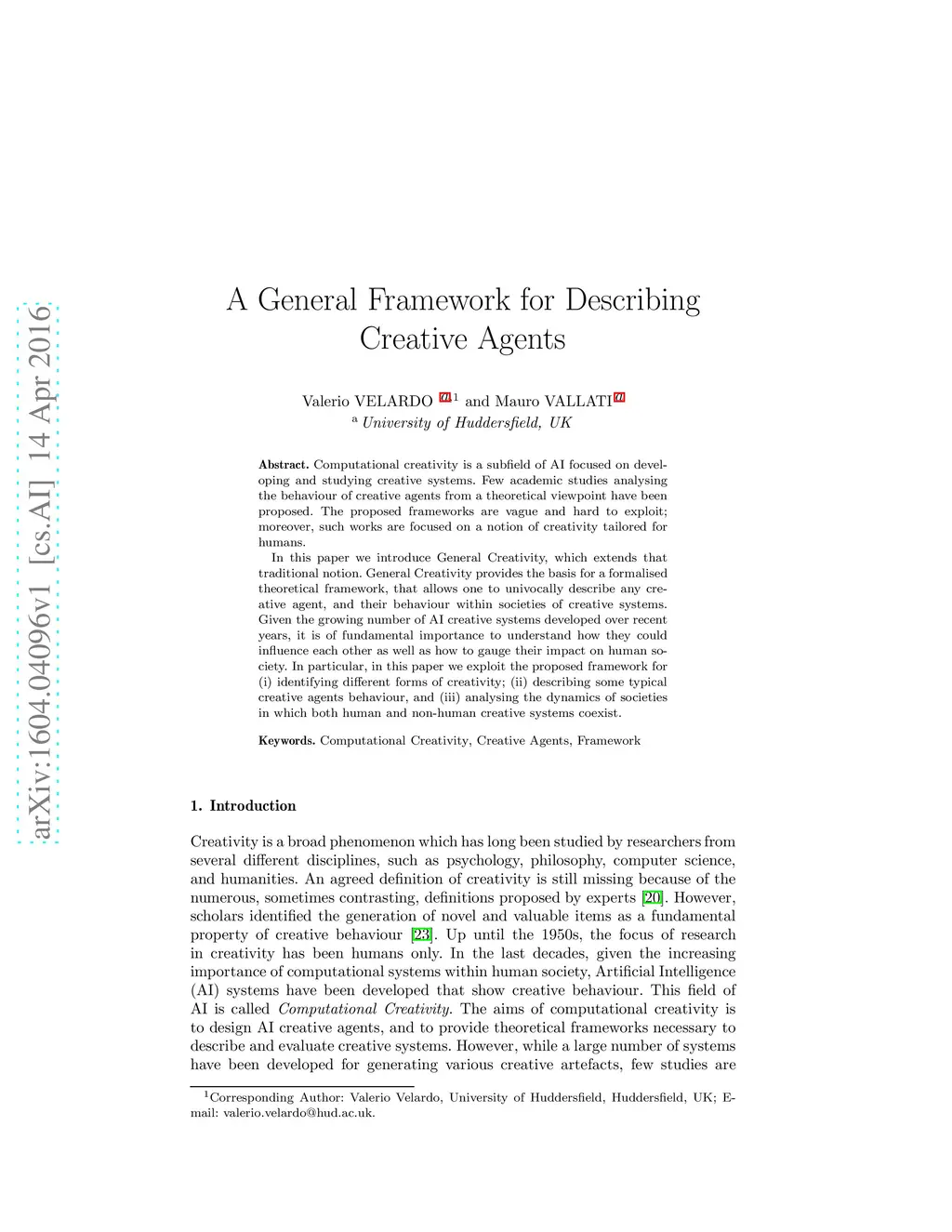 Computational creativity is a subfield of AI focused on developing and studying creative systems. Few academic studies analysing the behaviour of creative agents from a theoretical viewpoint have been proposed. The proposed frameworks are vague and hard to exploit; moreover, such works are focused on a notion of creativity tailored for humans. In this paper we introduce General Creativity, which extends that traditional notion. General Creativity provides the basis for a formalised theoretical framework, that allows one to univocally describe any creative agent, and their behaviour within societies of creative systems. Given the growing number of AI creative systems developed over recent years, it is of fundamental importance to understand how they could influence each other as well as how to gauge their impact on human society. In particular, in this paper we exploit the proposed framework for (i) identifying different forms of creativity; (ii) describing some typical creative agents behaviour, and (iii) analysing the dynamics of societies in which both human and non-human creative systems coexist.
