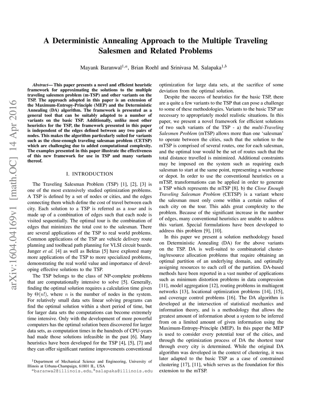 This paper presents a novel and efficient heuristic framework for approximating the solutions to the multiple traveling salesmen problem (m-TSP) and other variants on the TSP. The approach adopted in this paper is an extension of the Maximum-Entropy-Principle (MEP) and the Deterministic Annealing (DA) algorithm. The framework is presented as a general tool that can be suitably adapted to a number of variants on the basic TSP. Additionally, unlike most other heuristics for the TSP, the framework presented in this paper is independent of the edges defined between any two pairs of nodes. This makes the algorithm particularly suited for variants such as the close-enough traveling salesman problem (CETSP) which are challenging due to added computational complexity. The examples presented in this paper illustrate the effectiveness of this new framework for use in TSP and many variants thereof.