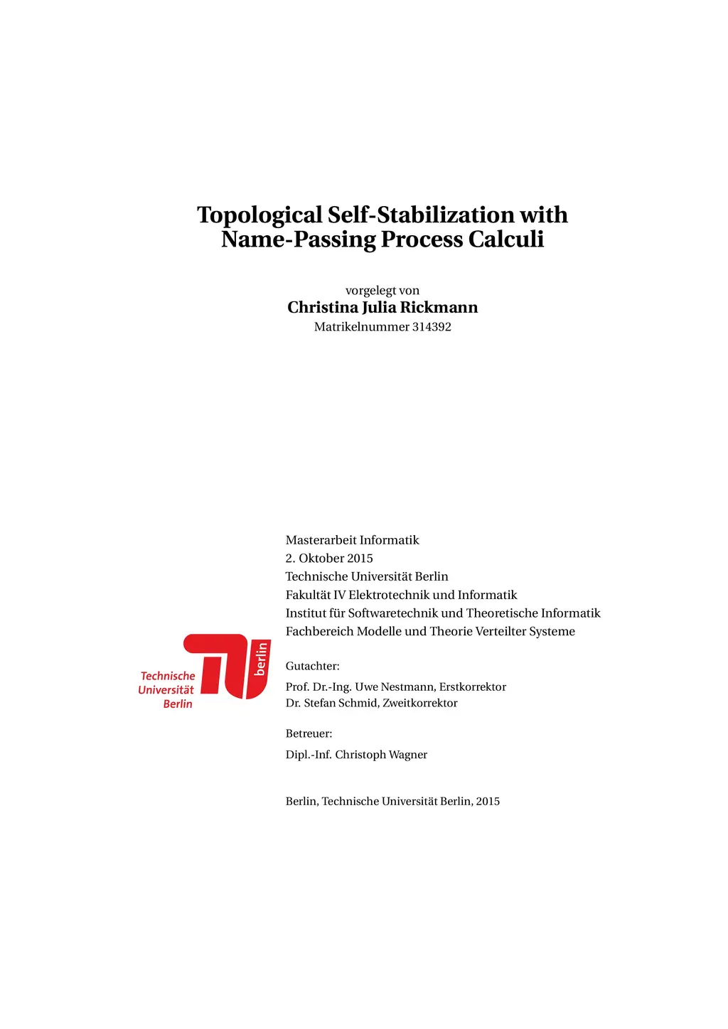 Topological Self-Stabilization with Name-Passing Process Calculi