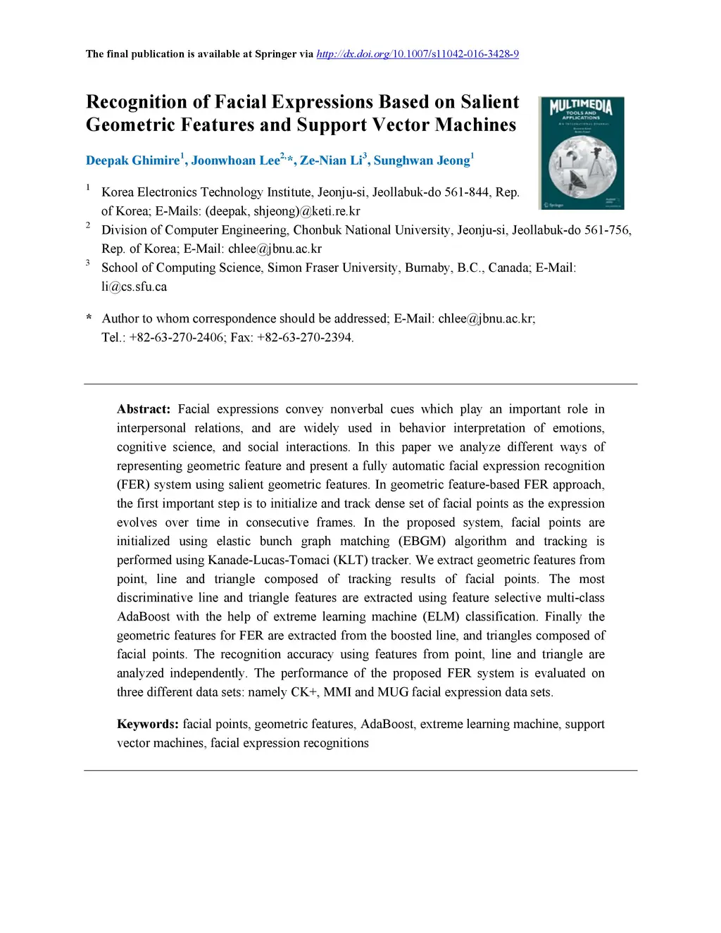 Facial expressions convey nonverbal cues which play an important role in interpersonal relations, and are widely used in behavior interpretation of emotions, cognitive science, and social interactions. In this paper we analyze different ways of representing geometric feature and present a fully automatic facial expression recognition (FER) system using salient geometric features. In geometric feature-based FER approach, the first important step is to initialize and track dense set of facial points as the expression evolves over time in consecutive frames. In the proposed system, facial points are initialized using elastic bunch graph matching (EBGM) algorithm and tracking is performed using Kanade-Lucas-Tomaci (KLT) tracker. We extract geometric features from point, line and triangle composed of tracking results of facial points. The most discriminative line and triangle features are extracted using feature selective multi-class AdaBoost with the help of extreme learning machine (ELM) classification. Finally the geometric features for FER are extracted from the boosted line, and triangles composed of facial points. The recognition accuracy using features from point, line and triangle are analyzed independently. The performance of the proposed FER system is evaluated on three different data sets: namely CK+, MMI and MUG facial expression data sets.
