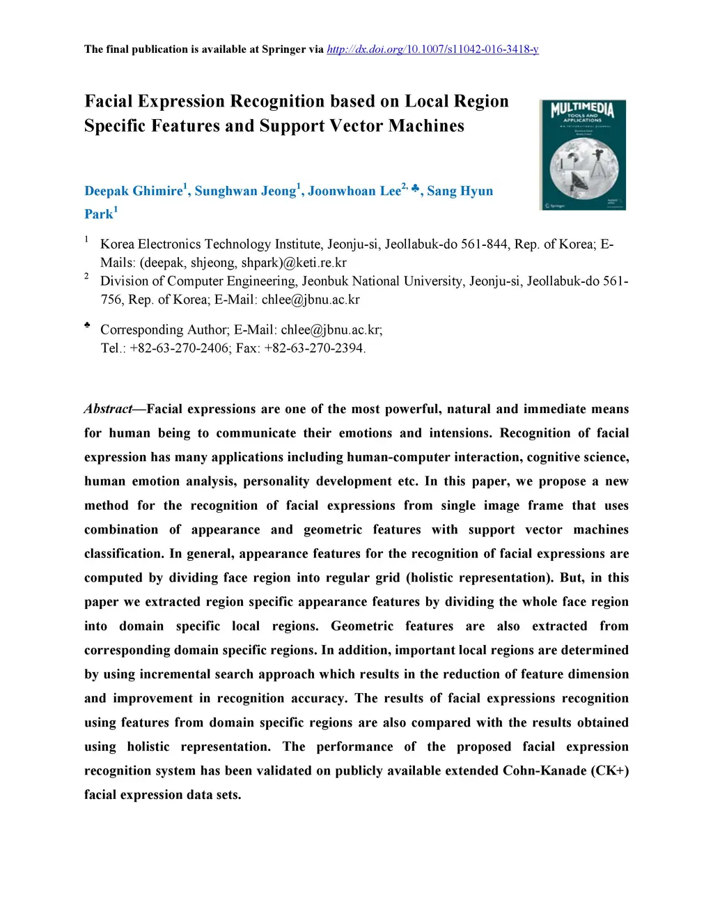 Facial expression recognition based on local region specific features
