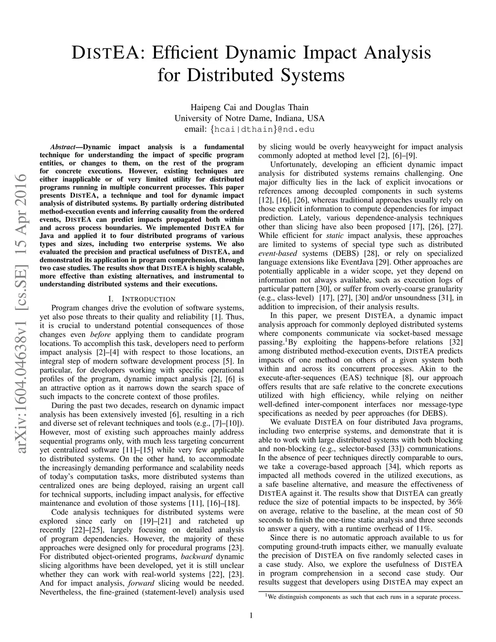 DISTEA: Efficient Dynamic Impact Analysis for Distributed Systems