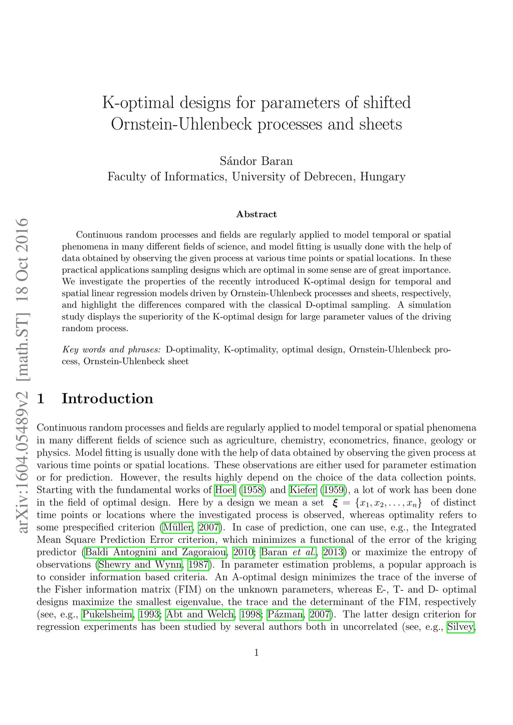 Continuous random processes and fields are regularly applied to model temporal or spatial phenomena in many different fields of science, and model fitting is usually done with the help of data obtained by observing the given process at various time points or spatial locations. In these practical applications sampling designs which are optimal in some sense are of great importance. We investigate the properties of the recently introduced K-optimal design for temporal and spatial linear regression models driven by Ornstein-Uhlenbeck processes and sheets, respectively, and highlight the differences compared with the classical D-optimal sampling. A simulation study displays the superiority of the K-optimal design for large parameter values of the driving random process.