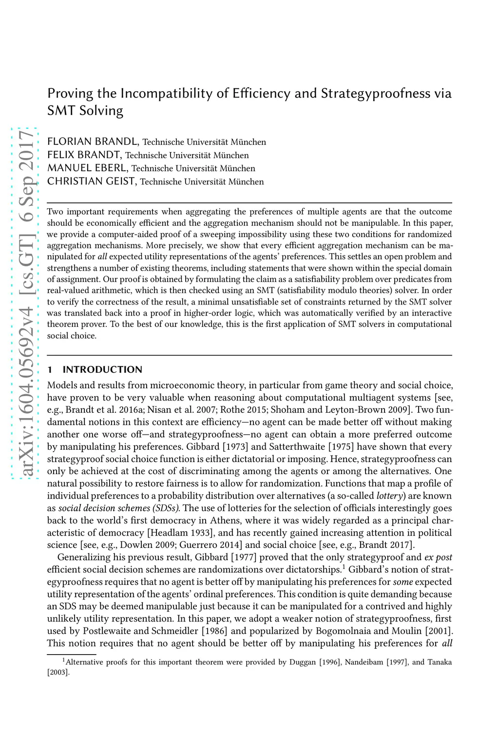 Proving the Incompatibility of Efficiency and Strategyproofness via SMT