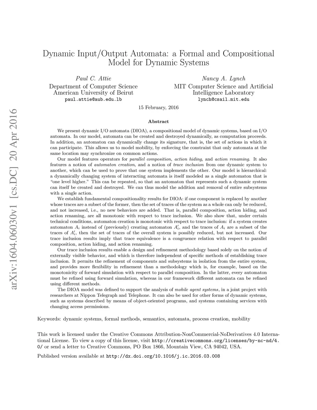 Dynamic Input/Output Automata: a Formal and Compositional Model for