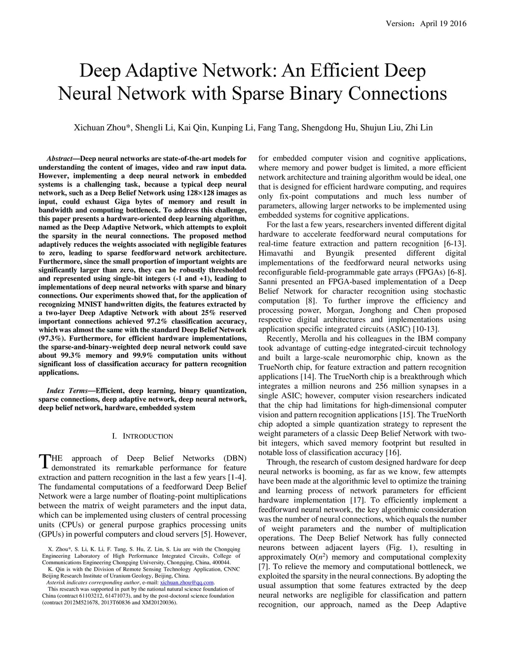 Deep Adaptive Network: An Efficient Deep Neural Network with Sparse