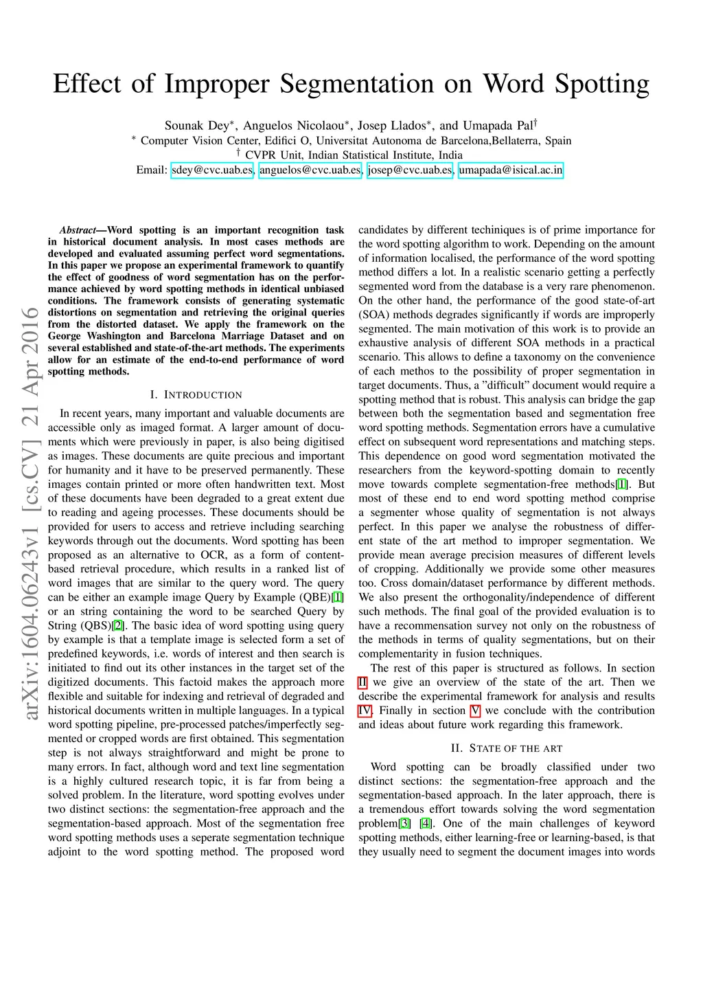 Evaluation of the Effect of Improper Segmentation on Word Spotting