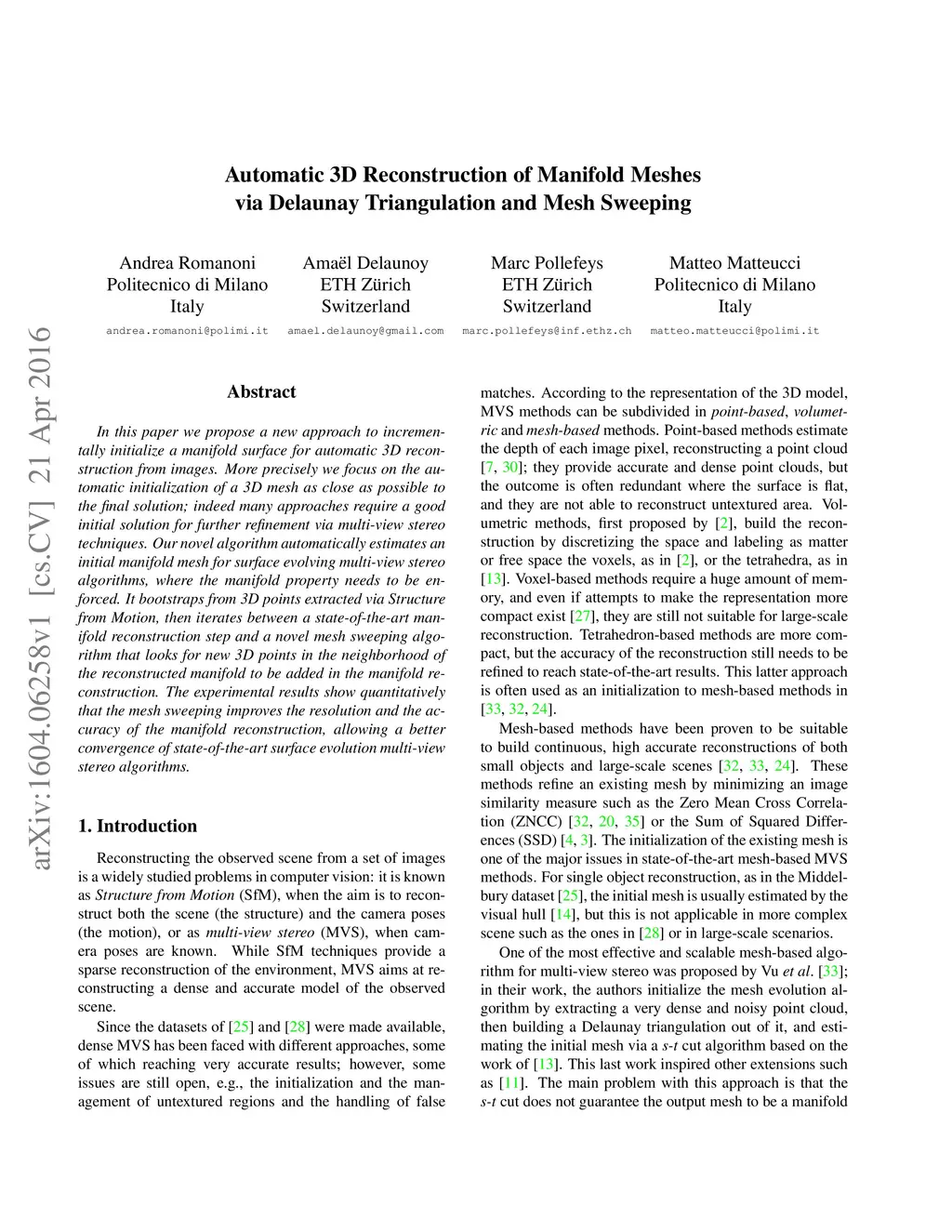 Automatic 3D Reconstruction of Manifold Meshes via Delaunay