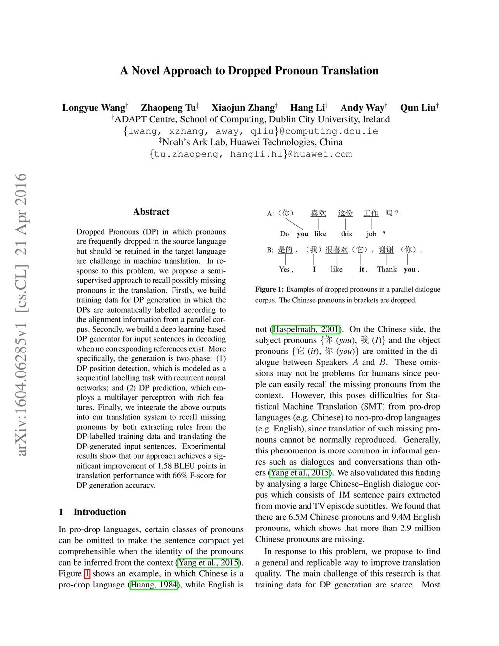 A Novel Approach to Dropped Pronoun Translation