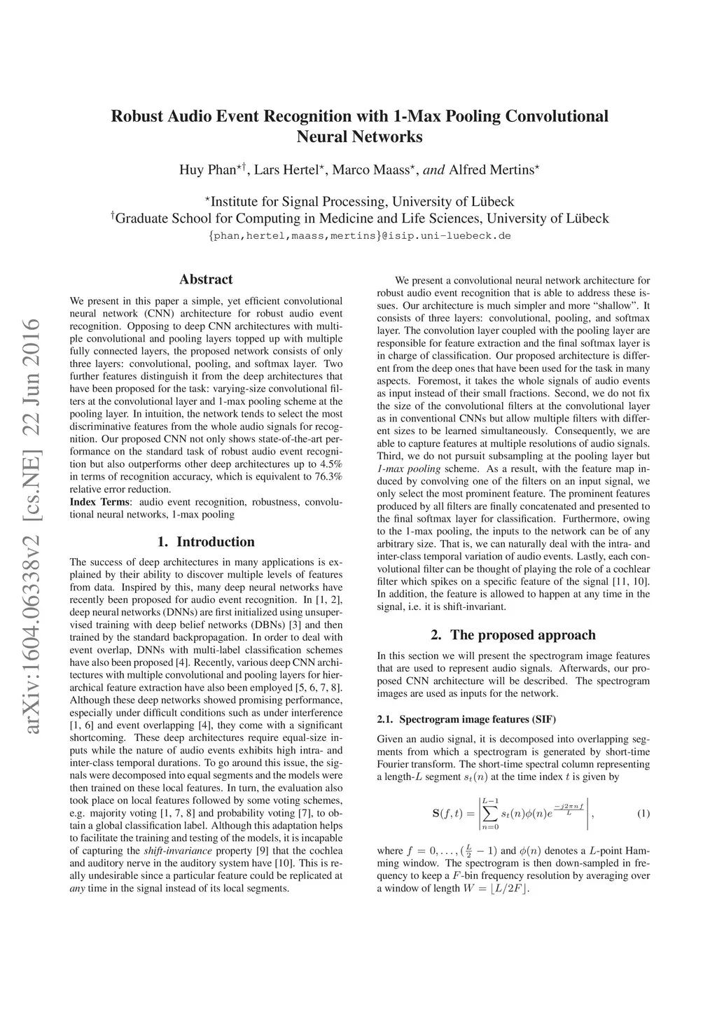 Robust Audio Event Recognition with 1-Max Pooling Convolutional Neural