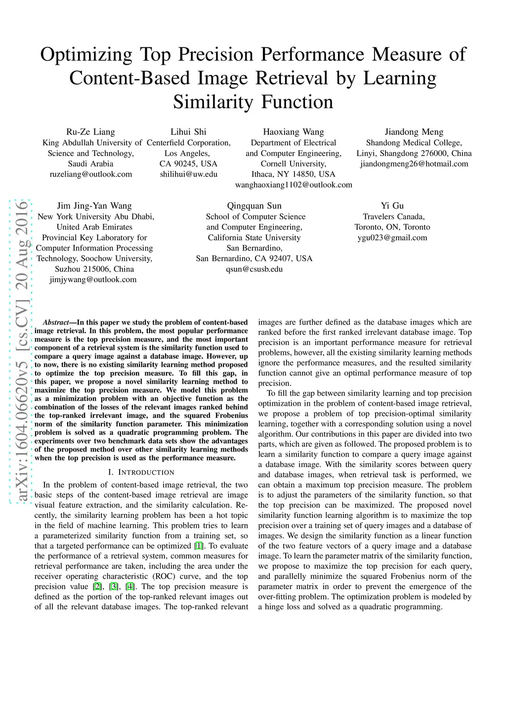 Optimizing Top Precision Performance Measure of Content-Based Image