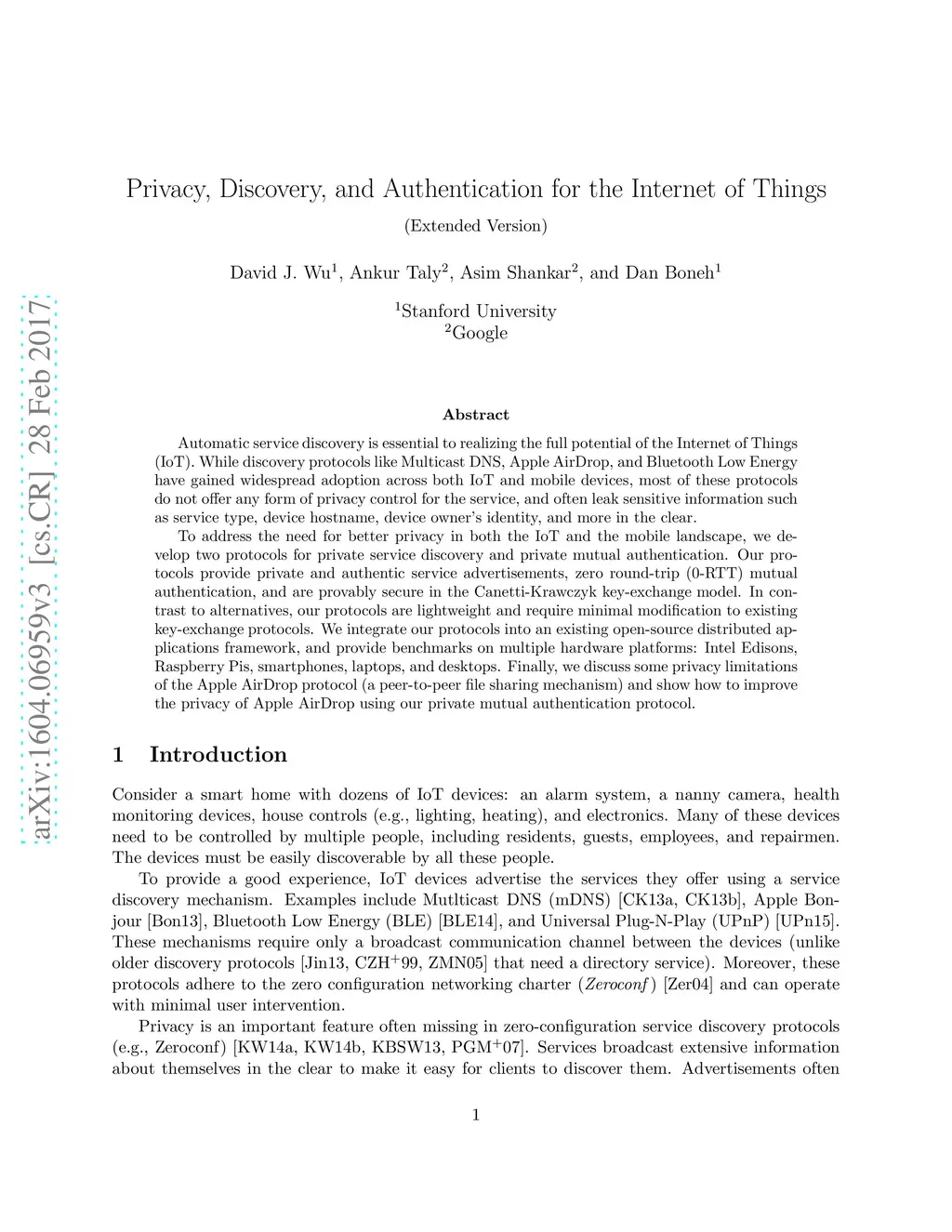 Privacy, Discovery, and Authentication for the Internet of Things