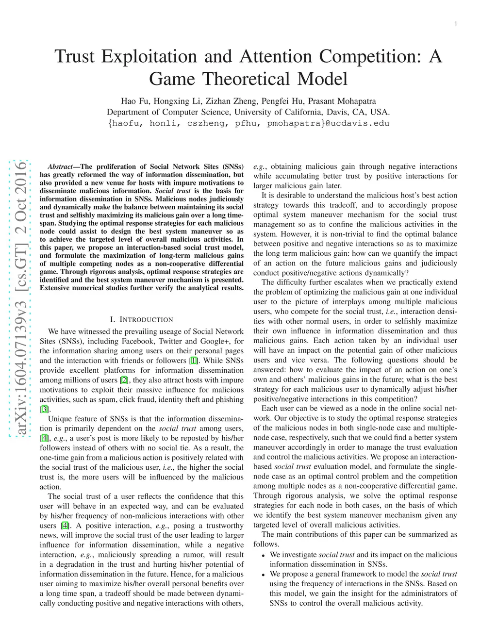 Trust Exploitation and Attention Competition: A Game Theoretical Model