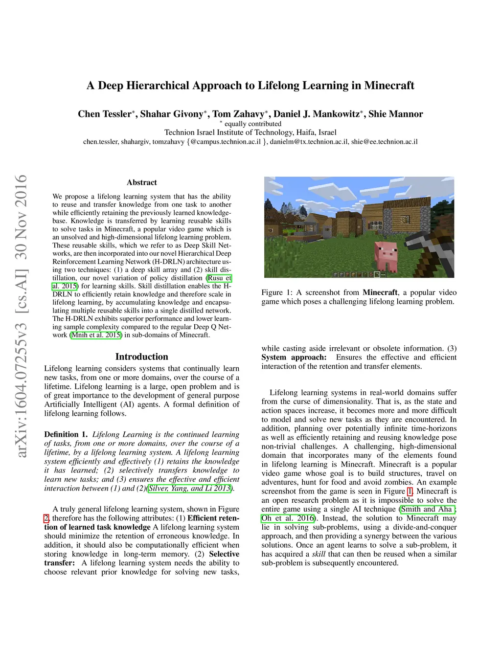 A Deep Hierarchical Approach to Lifelong Learning in Minecraft