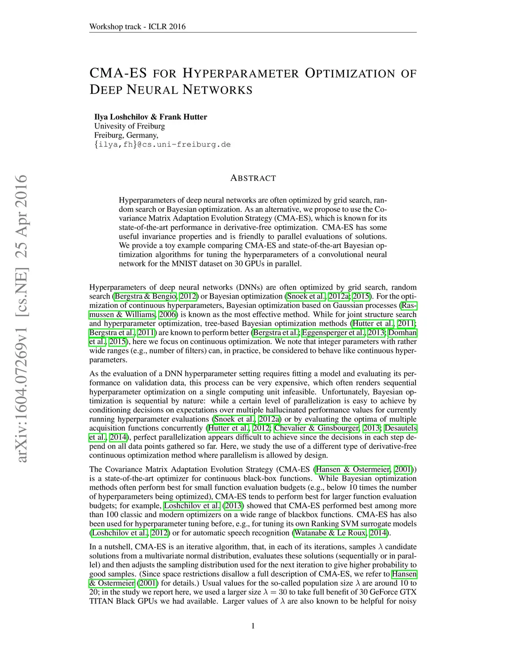 CMA-ES for Hyperparameter Optimization of Deep Neural Networks