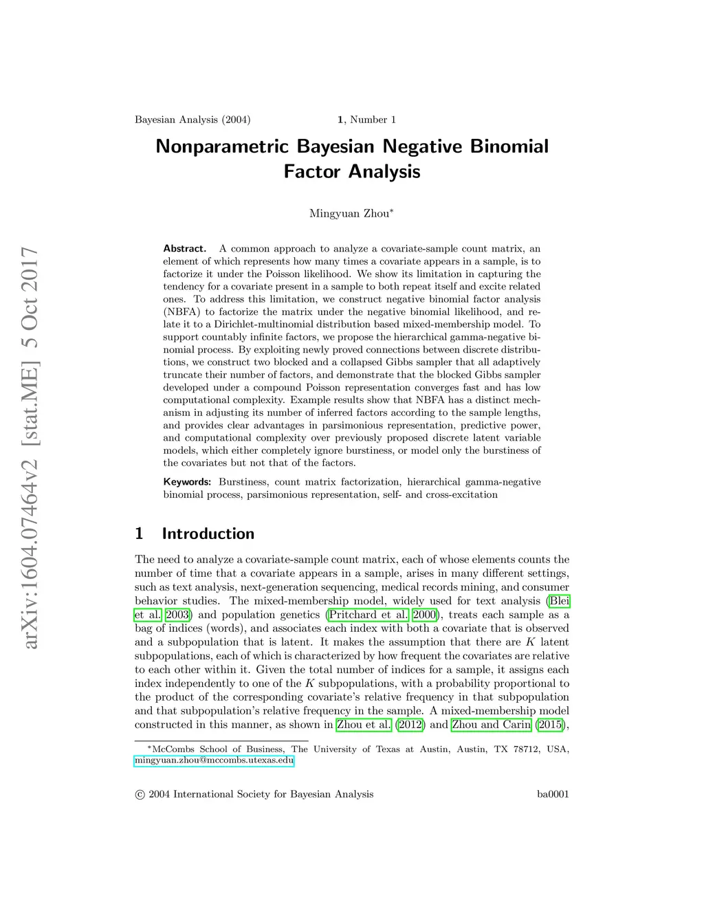 Nonparametric Bayesian Negative Binomial Factor Analysis