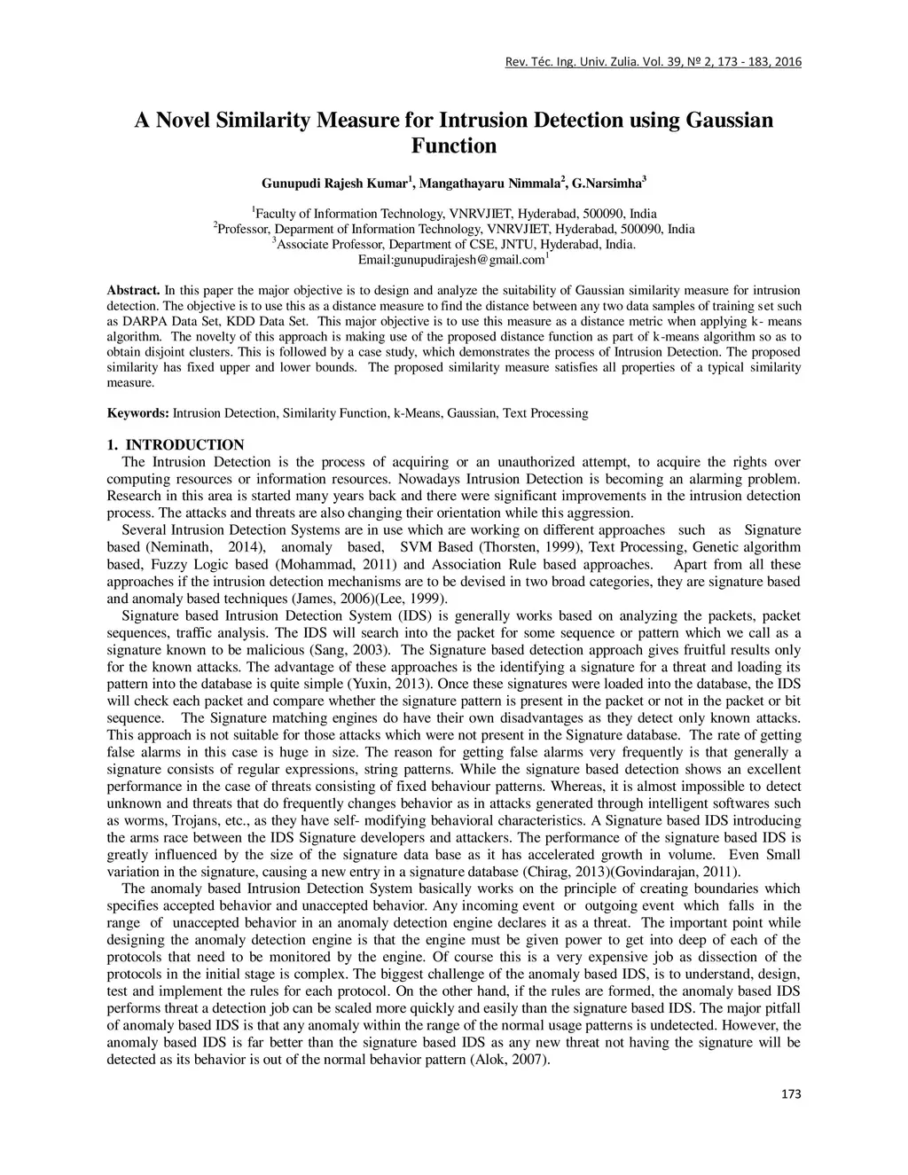 A Novel Similarity Measure for Intrusion Detection using Gaussian