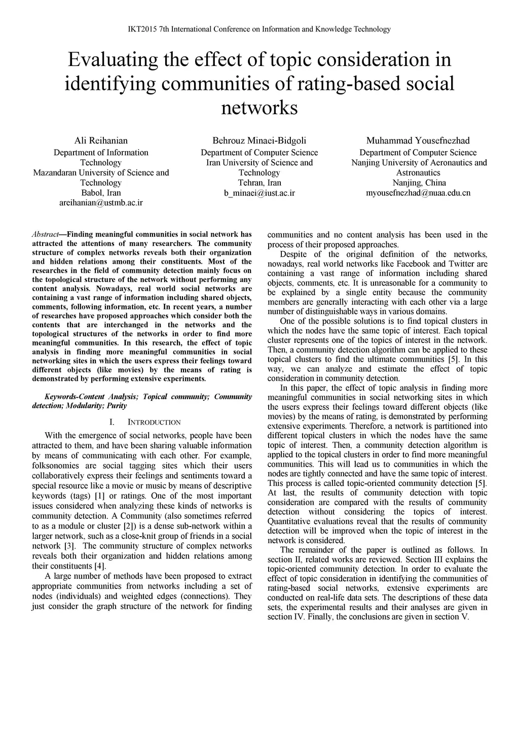 Evaluating the effect of topic consideration in identifying communities