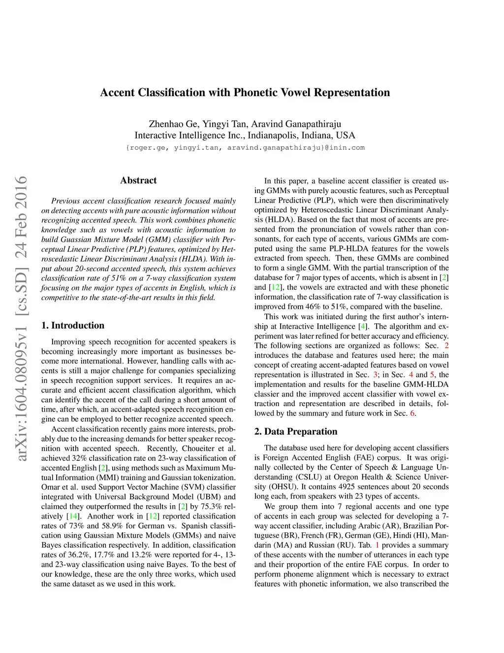 Accent Classification with Phonetic Vowel Representation