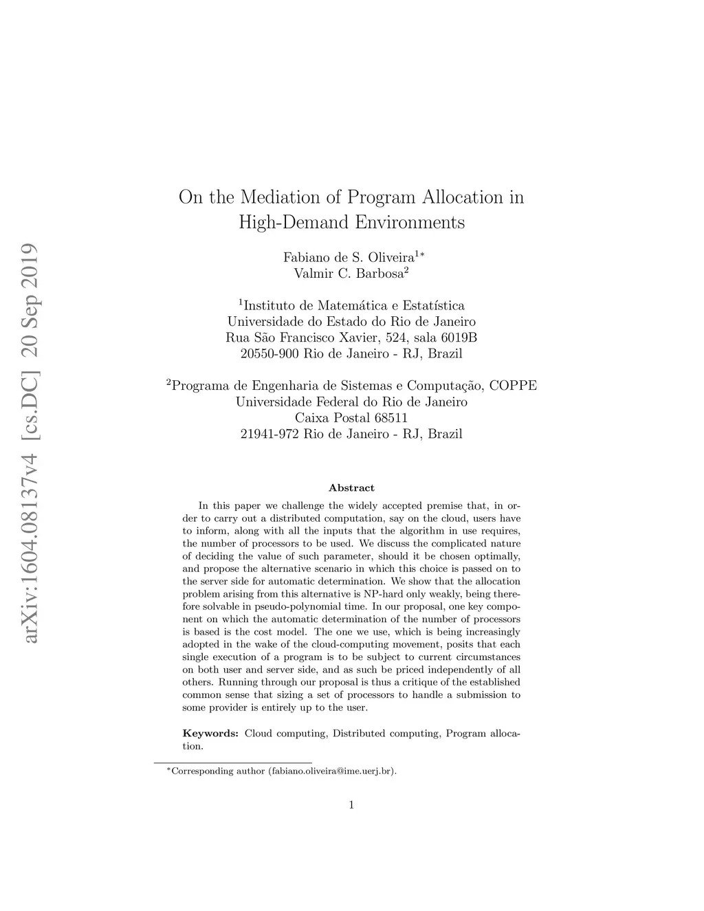 In this paper we challenge the widely accepted premise that, in order to carry out a distributed computation, say on the cloud, users have to inform, along with all the inputs that the algorithm in use requires, the number of processors to be used. We discuss the complicated nature of deciding the value of such parameter, should it be chosen optimally, and propose the alternative scenario in which this choice is passed on to the server side for automatic determination. We show that the allocation problem arising from this alternative is NP-hard only weakly, being therefore solvable in pseudo-polynomial time. In our proposal, one key component on which the automatic determination of the number of processors is based is the cost model. The one we use, which is being increasingly adopted in the wake of the cloud-computing movement, posits that each single execution of a program is to be subject to current circumstances on both user and server side, and as such be priced independently of all others. Running through our proposal is thus a critique of the established common sense that sizing a set of processors to handle a submission to some provider is entirely up to the user.