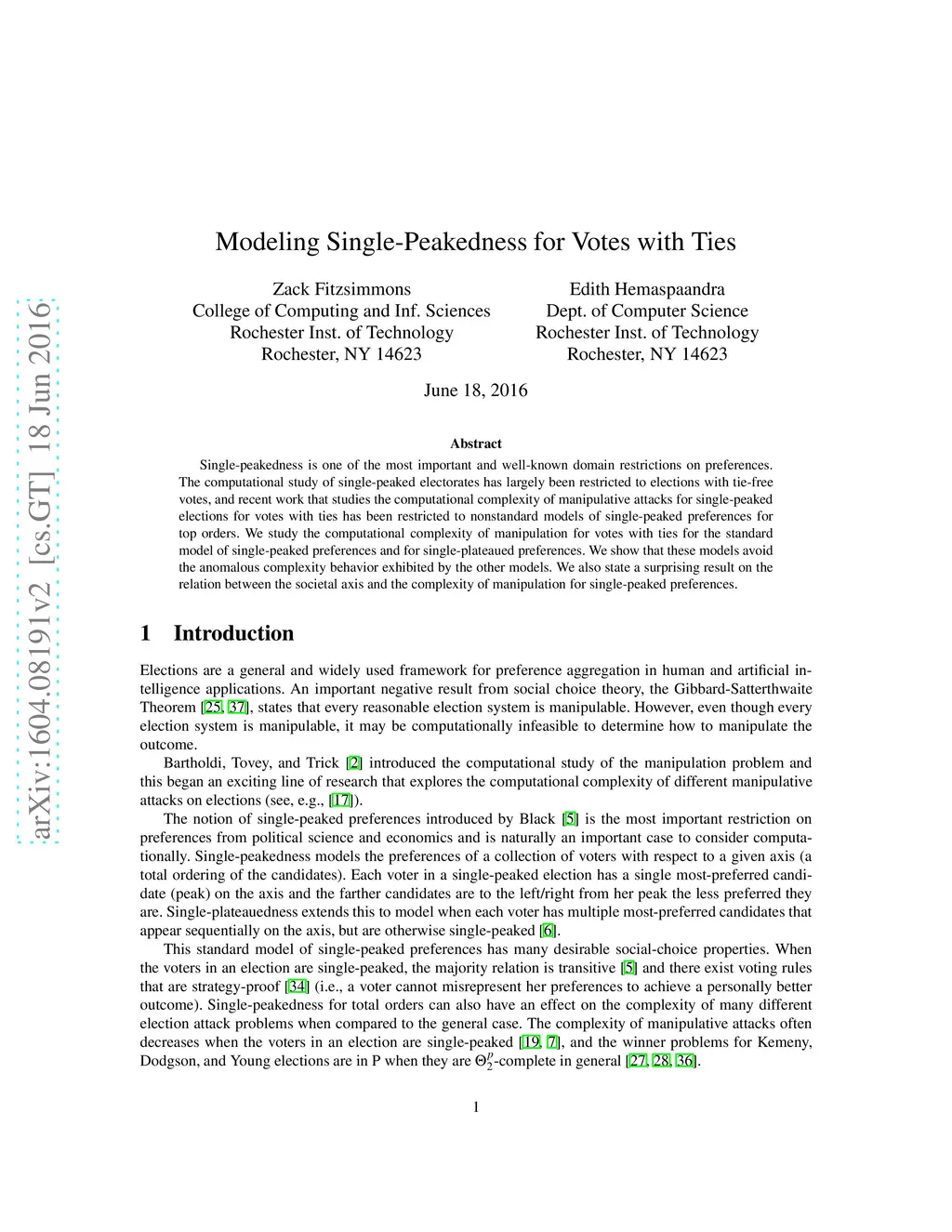 Single-peakedness is one of the most important and well-known domain restrictions on preferences. The computational study of single-peaked electorates has largely been restricted to elections with tie-free votes, and recent work that studies the computational complexity of manipulative attacks for single-peaked elections for votes with ties has been restricted to nonstandard models of single-peaked preferences for top orders. We study the computational complexity of manipulation for votes with ties for the standard model of single-peaked preferences and for single-plateaued preferences. We show that these models avoid the anomalous complexity behavior exhibited by the other models. We also state a surprising result on the relation between the societal axis and the complexity of manipulation for single-peaked preferences.