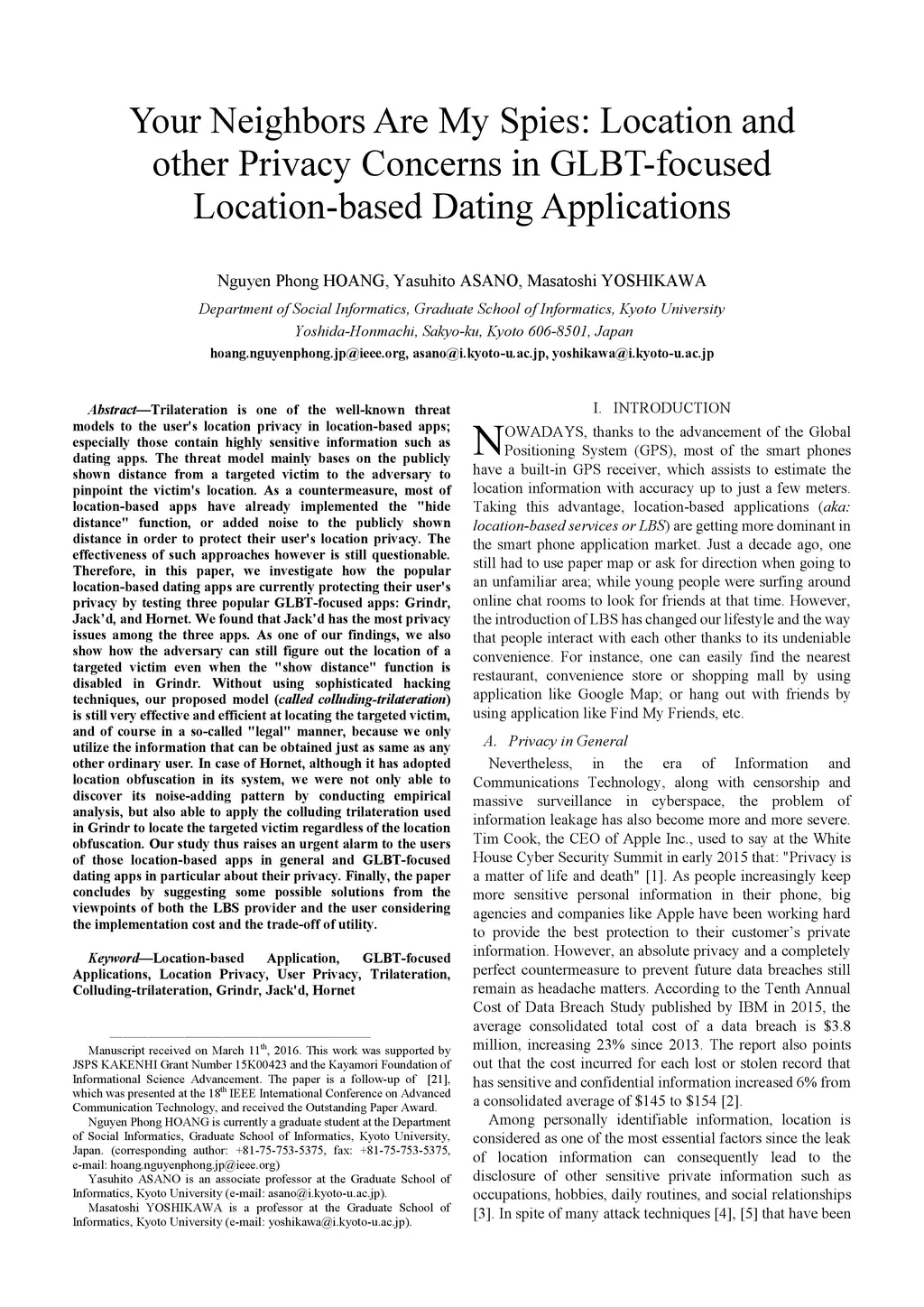 Your Neighbors Are My Spies: Location and other Privacy Concerns in