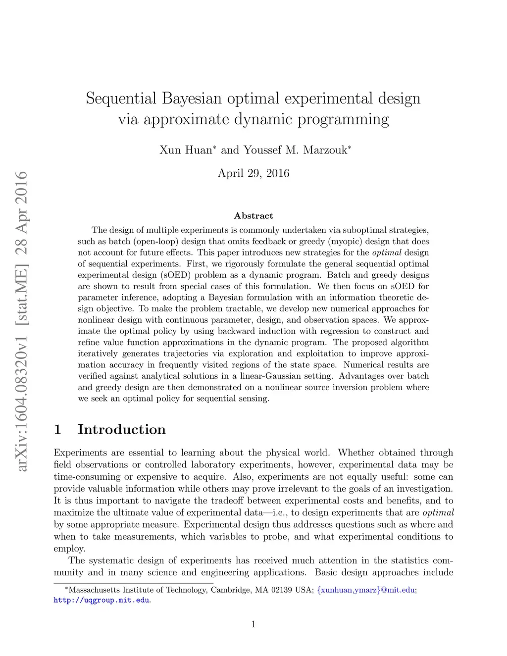 Sequential Bayesian optimal experimental design via approximate dynamic