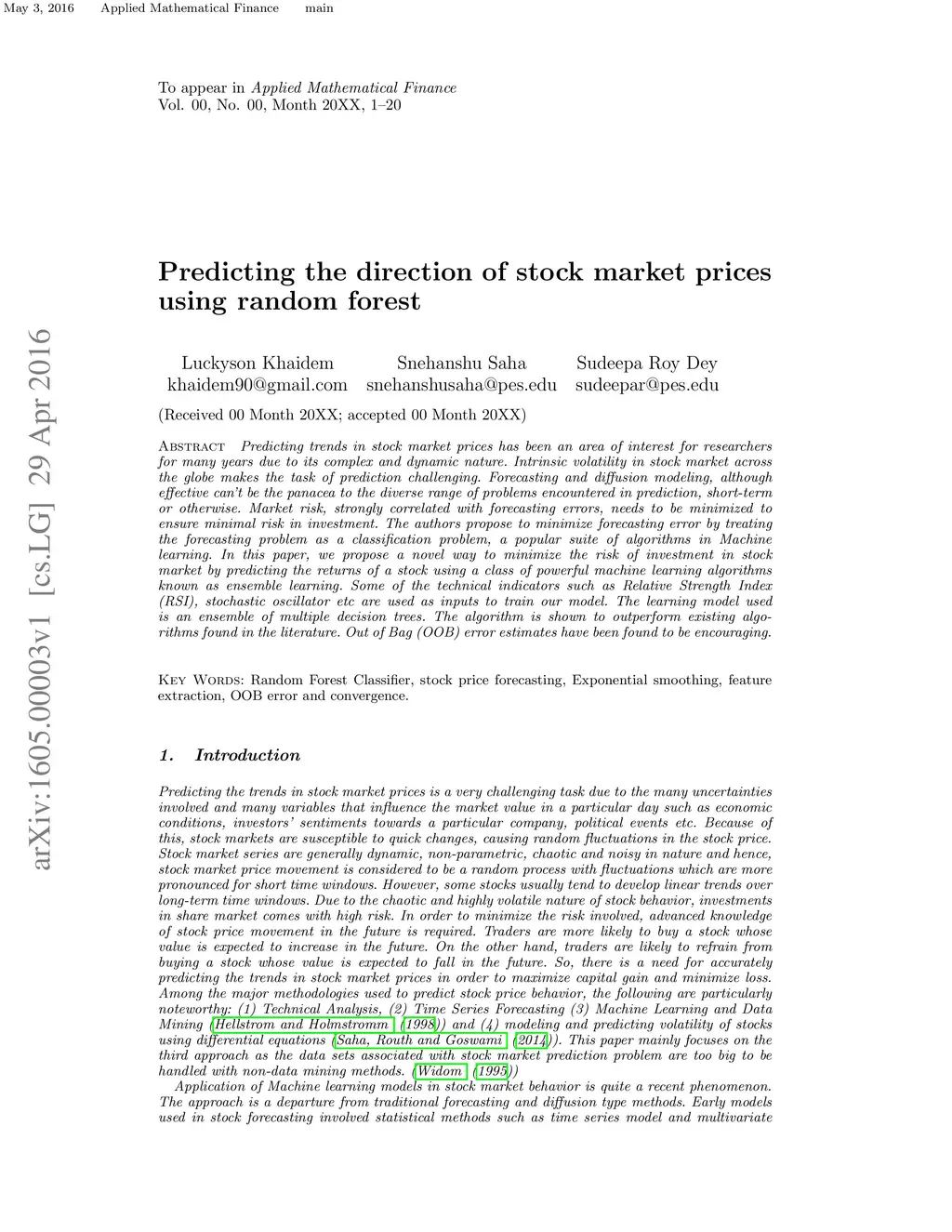 Predicting the direction of stock market prices using random forest