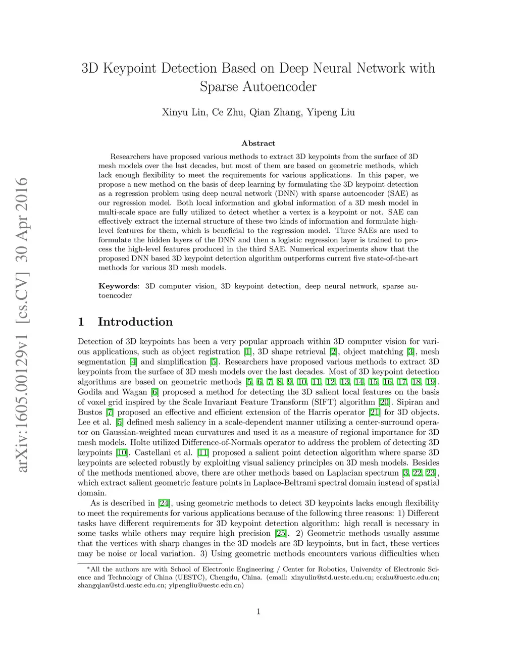 3D Keypoint Detection Based on Deep Neural Network with Sparse