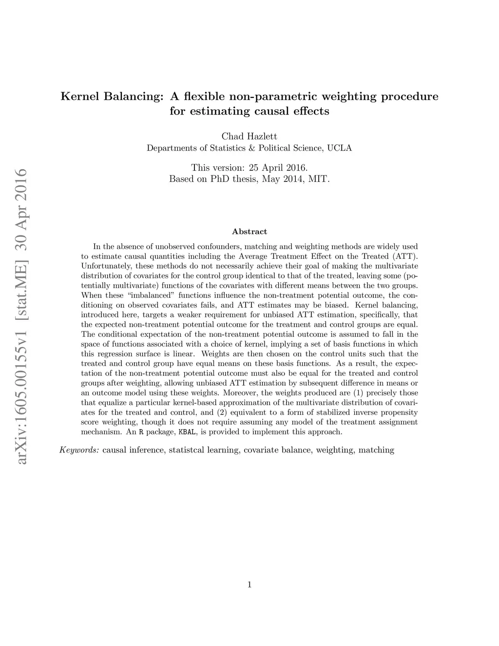 Kernel Balancing: A flexible non-parametric weighting procedure for