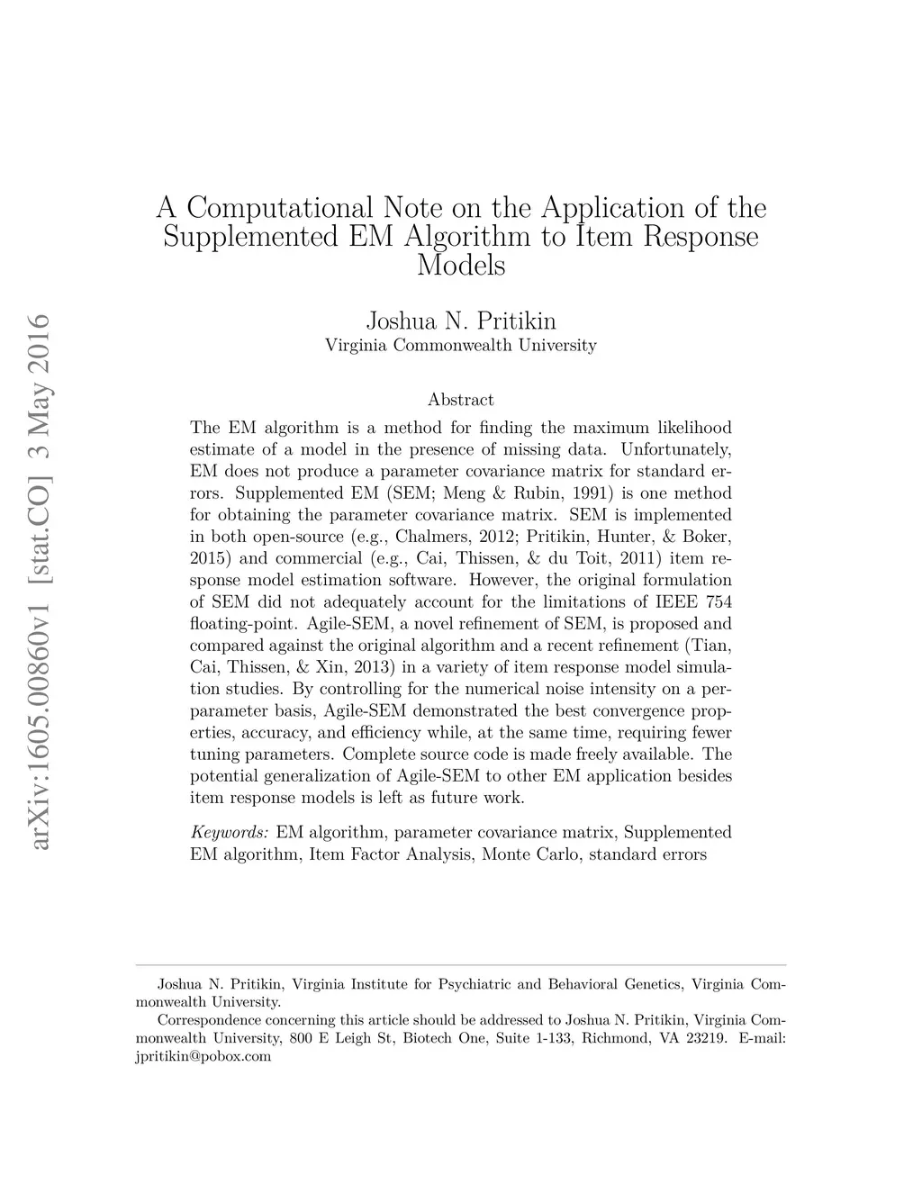 The EM algorithm is a method for finding the maximum likelihood estimate of a model in the presence of missing data. Unfortunately, EM does not produce a parameter covariance matrix for standard errors. Supplemented EM (SEM; Meng & Rubin, 1991) is one method for obtaining the parameter covariance matrix. SEM is implemented in both open-source (e.g., Chalmers, 2012; Pritikin, Hunter, & Boker, 2015) and commercial (e.g., Cai, Thissen, & du Toit, 2011) item response model estimation software. However, the original formulation of SEM did not adequately account for the limitations of IEEE 754 floating-point. Agile-SEM, a novel refinement of SEM, is proposed and compared against the original algorithm and a recent refinement (Tian, Cai, Thissen, & Xin, 2013) in a variety of item response model simulation studies. By controlling for the numerical noise intensity on a per-parameter basis, Agile-SEM demonstrated the best convergence properties, accuracy, and efficiency while, at the same time, requiring fewer tuning parameters. Complete source code is made freely available. The potential generalization of Agile-SEM to other EM application besides item response models is left as future work.