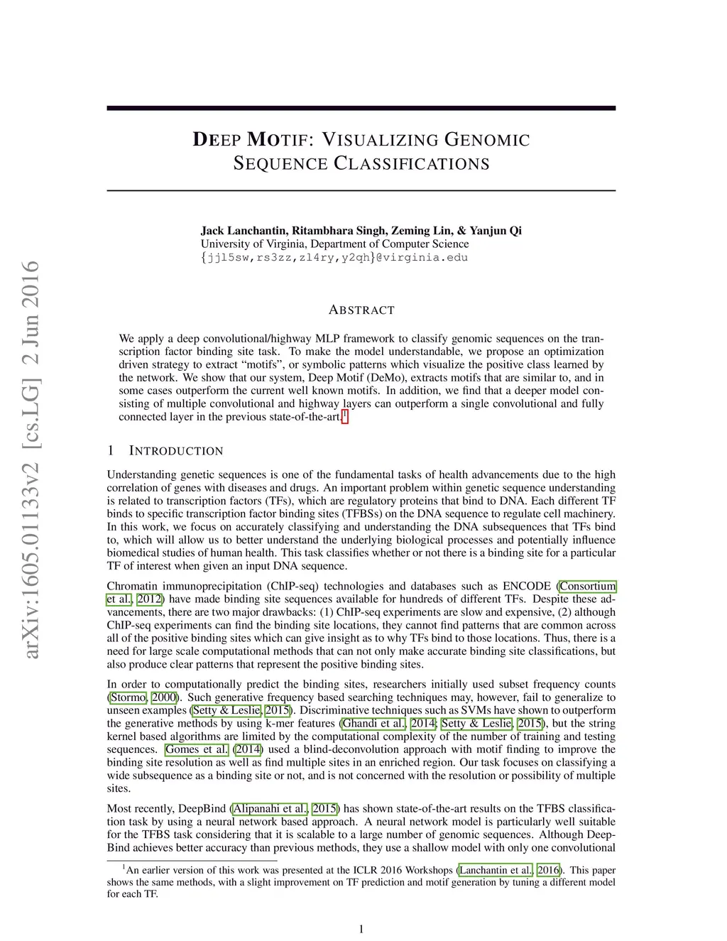 This paper applies a deep convolutional/highway MLP framework to classify genomic sequences on the transcription factor binding site task. To make the model understandable, we propose an optimization driven strategy to extract "motifs", or symbolic patterns which visualize the positive class learned by the network. We show that our system, Deep Motif (DeMo), extracts motifs that are similar to, and in some cases outperform the current well known motifs. In addition, we find that a deeper model consisting of multiple convolutional and highway layers can outperform a single convolutional and fully connected layer in the previous state-of-the-art.