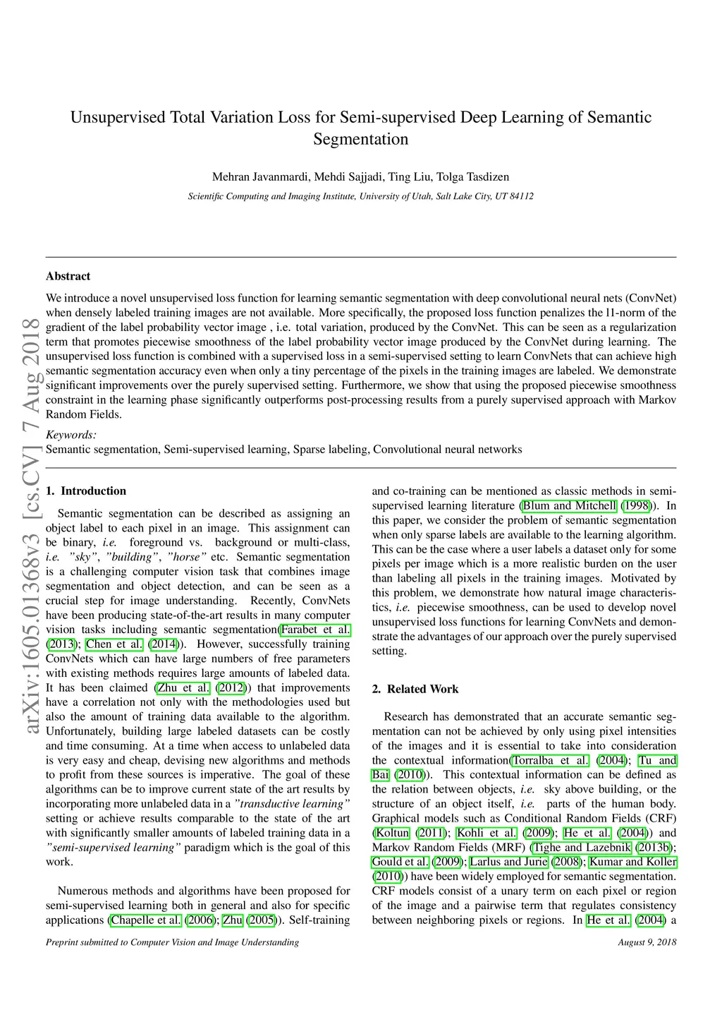 Unsupervised Total Variation Loss for Semi-supervised Deep Learning of