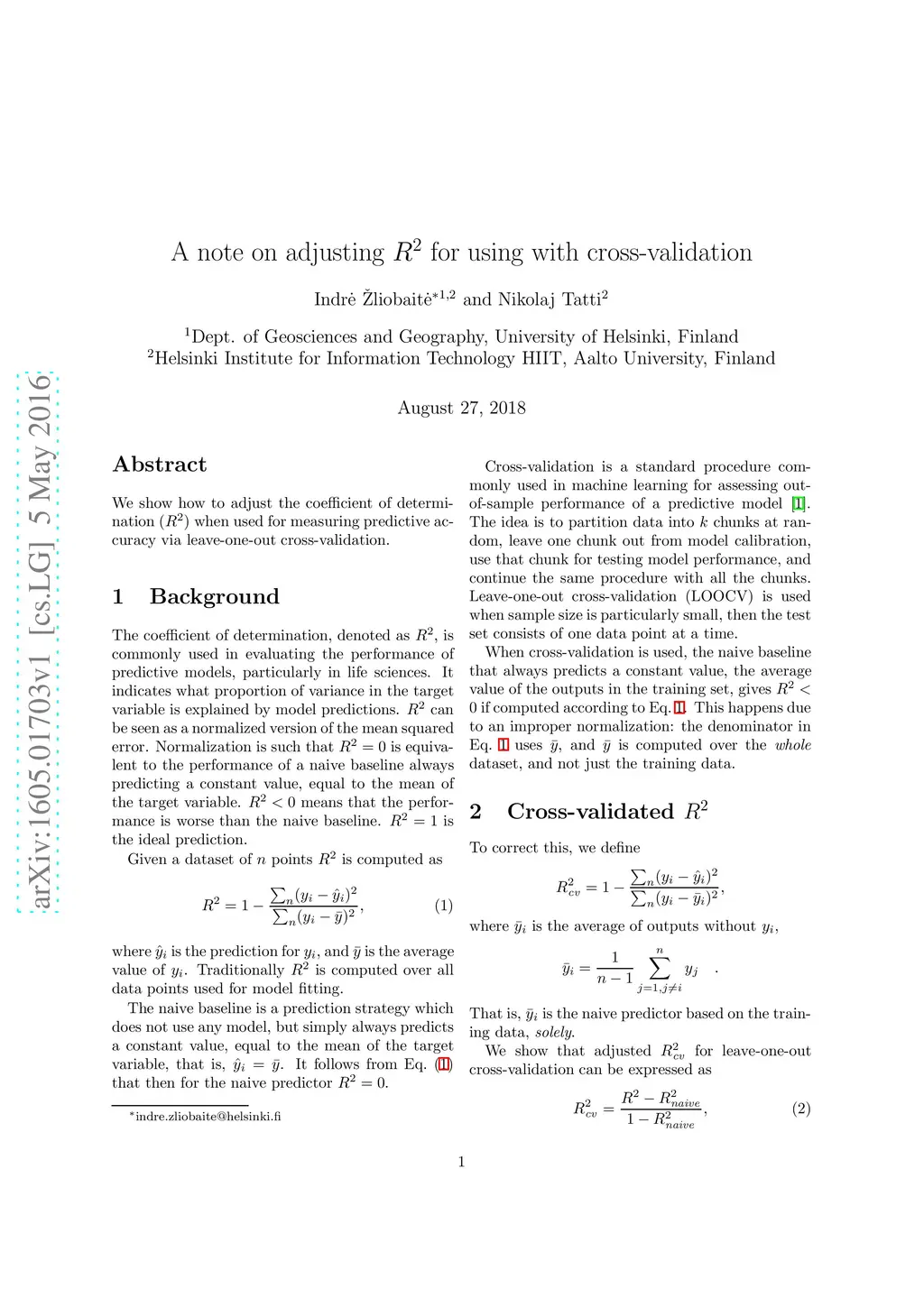 We show how to adjust the coefficient of determination () when used for measuring predictive accuracy via leave-one-out cross-validation.