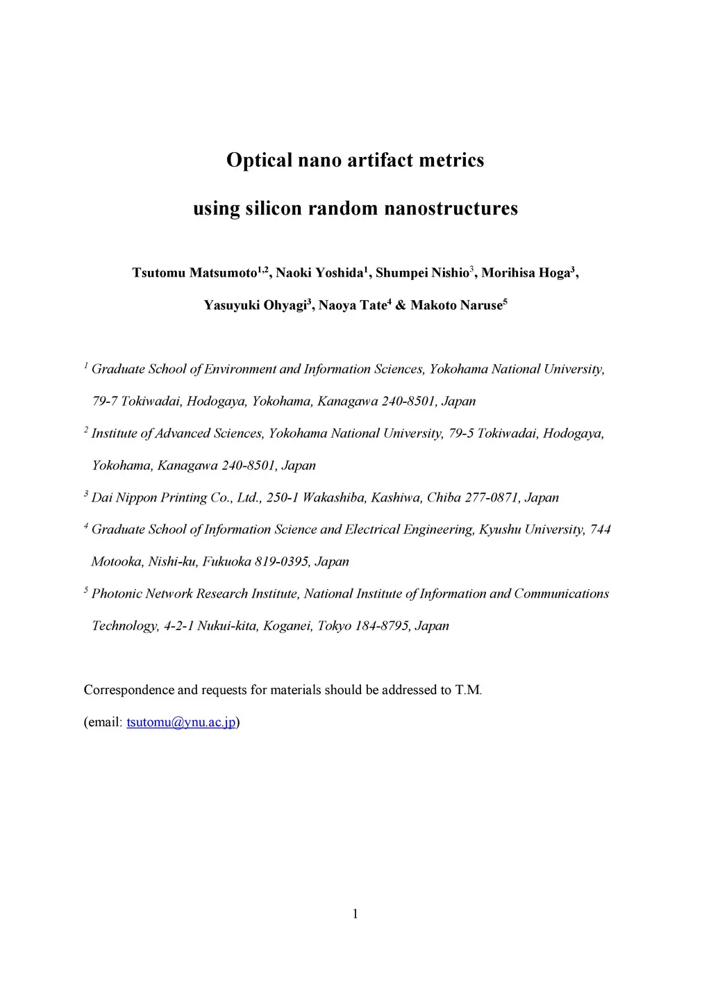 Optical nano artifact metrics using silicon random nanostructures
