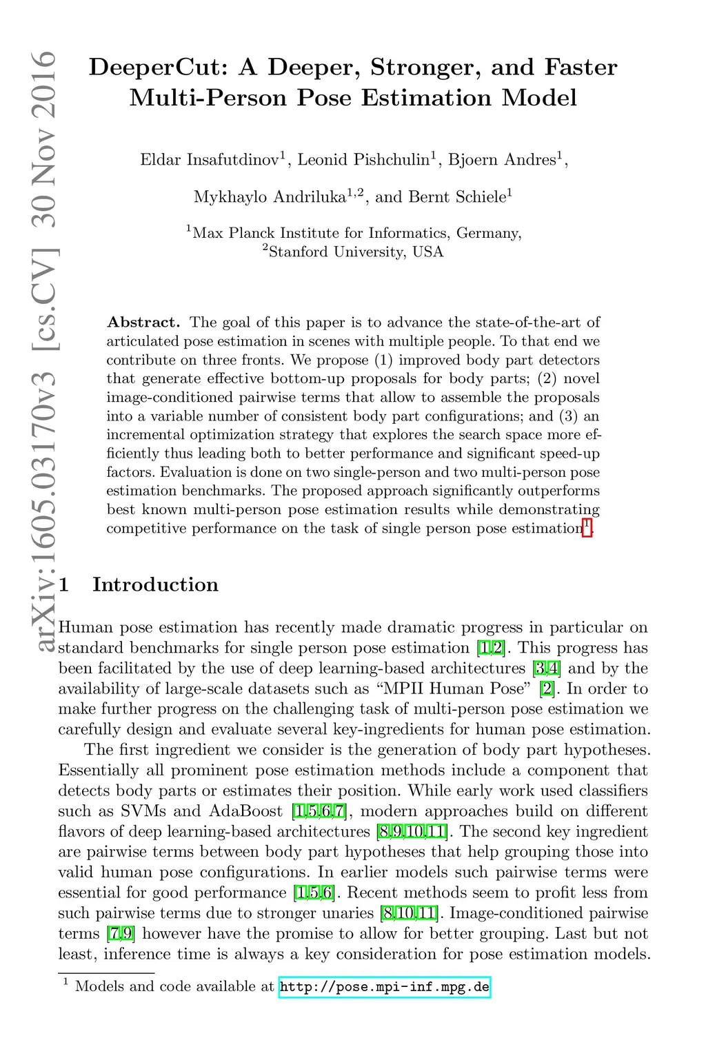 DeeperCut: A Deeper, Stronger, and Faster Multi-Person Pose Estimation