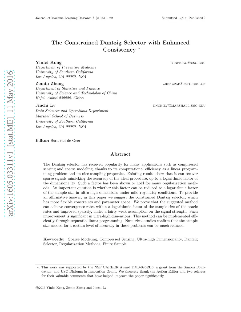 The constrained Dantzig selector with enhanced consistency