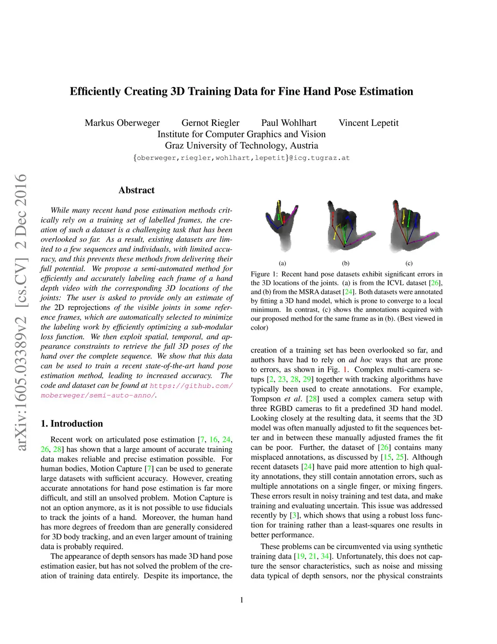Efficiently Creating 3D Training Data for Fine Hand Pose Estimation