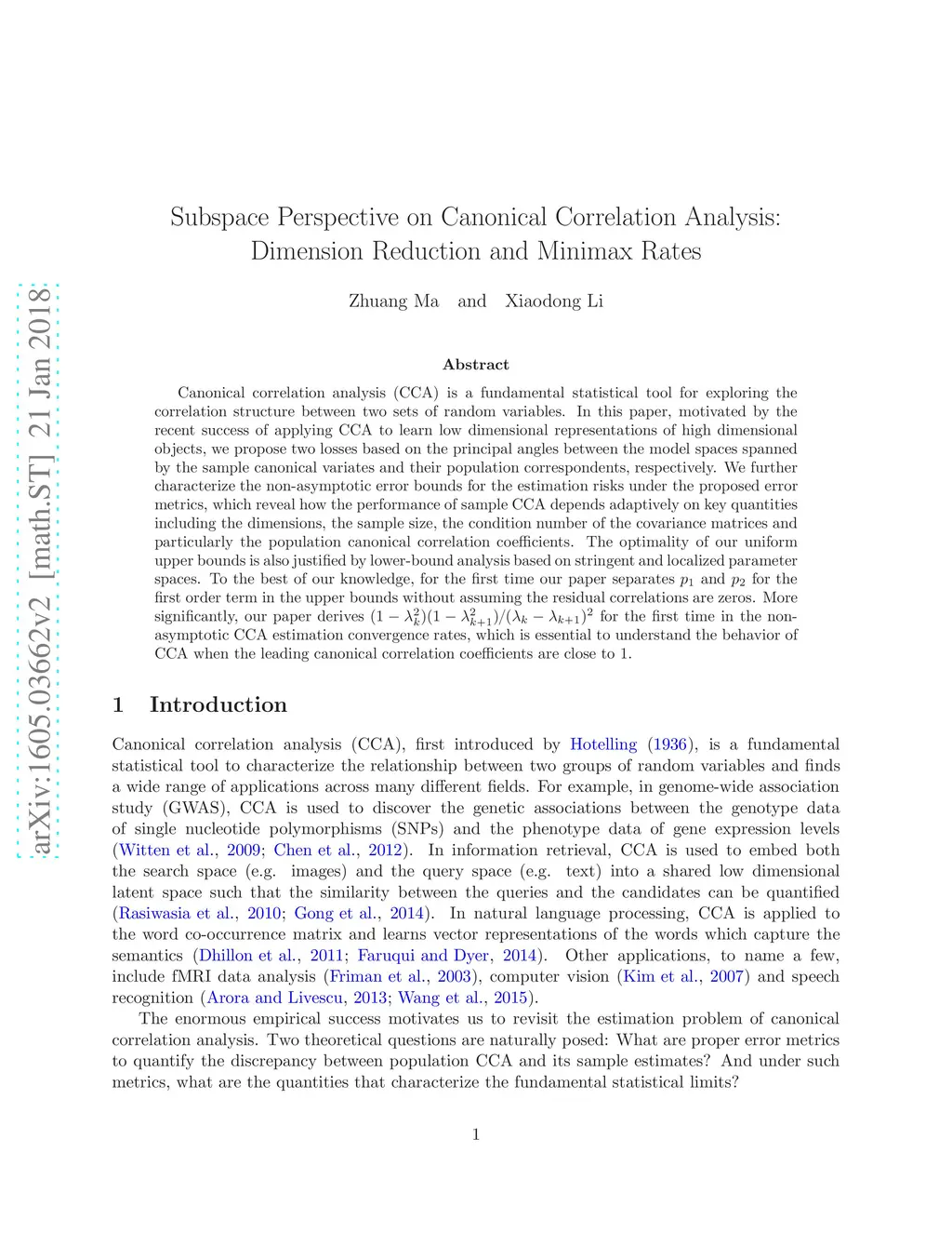 Subspace Perspective on Canonical Correlation Analysis: Dimension