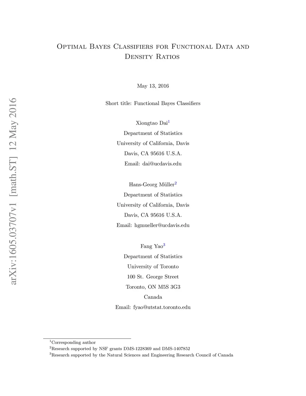 Optimal Bayes Classifiers for Functional Data and Density Ratios