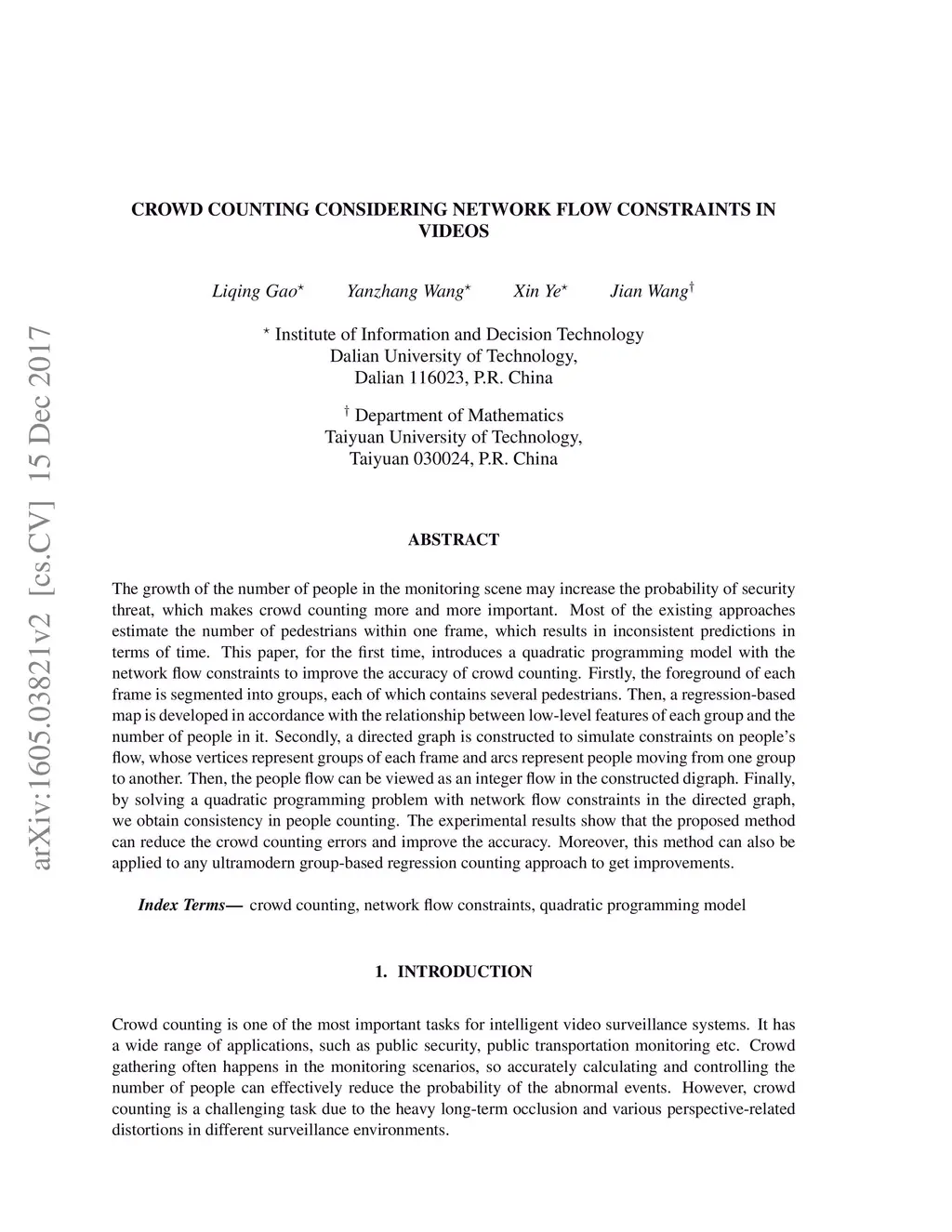 The growth of the number of people in the monitoring scene may increase the probability of security threat, which makes crowd counting more and more important. Most of the existing approaches estimate the number of pedestrians within one frame, which results in inconsistent predictions in terms of time. This paper, for the first time, introduces a quadratic programming model with the network flow constraints to improve the accuracy of crowd counting. Firstly, the foreground of each frame is segmented into groups, each of which contains several pedestrians. Then, a regression-based map is developed in accordance with the relationship between low-level features of each group and the number of people in it. Secondly, a directed graph is constructed to simulate constraints on people's flow, whose vertices represent groups of each frame and arcs represent people moving from one group to another. Then, the people flow can be viewed as an integer flow in the constructed digraph. Finally, by solving a quadratic programming problem with network flow constraints in the directed graph, we obtain consistency in people counting. The experimental results show that the proposed method can reduce the crowd counting errors and improve the accuracy. Moreover, this method can also be applied to any ultramodern group-based regression counting approach to get improvements.